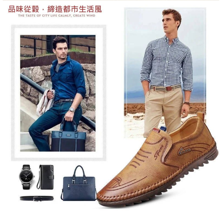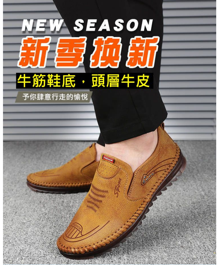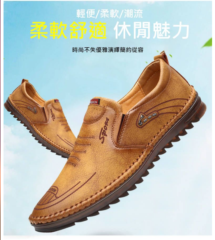 純牛皮男士潮流休閒鞋【卡其色】+【黑色】各一雙(優惠400)