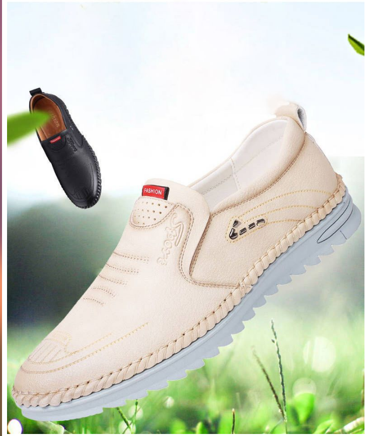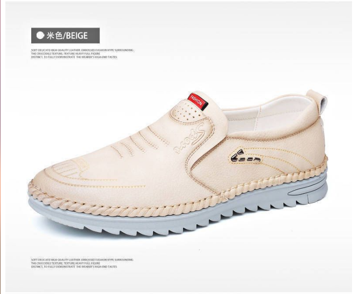 純牛皮男士潮流休閒鞋【卡其色】+【米白色】各一雙(優惠400)
