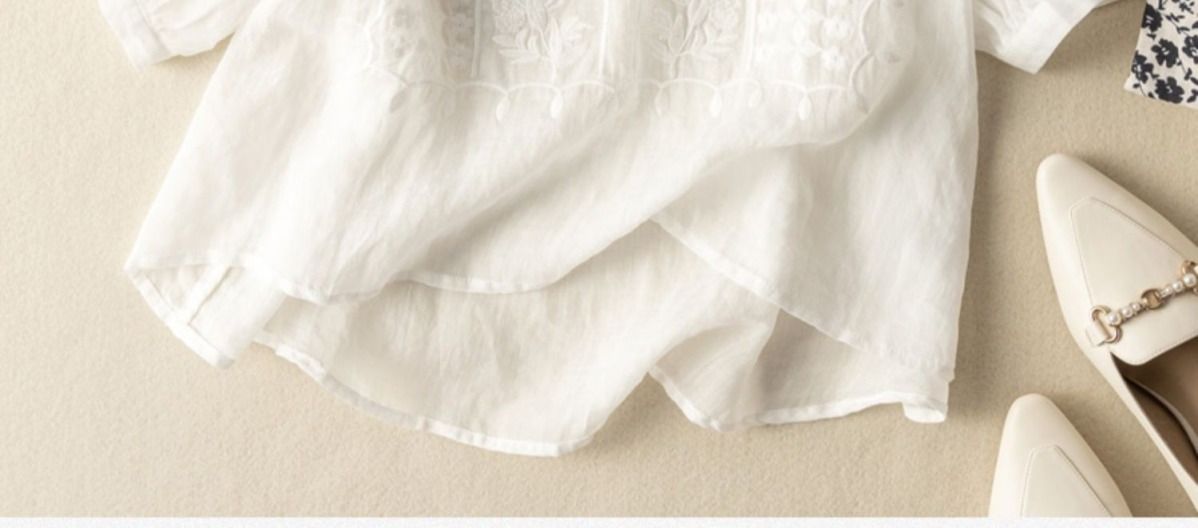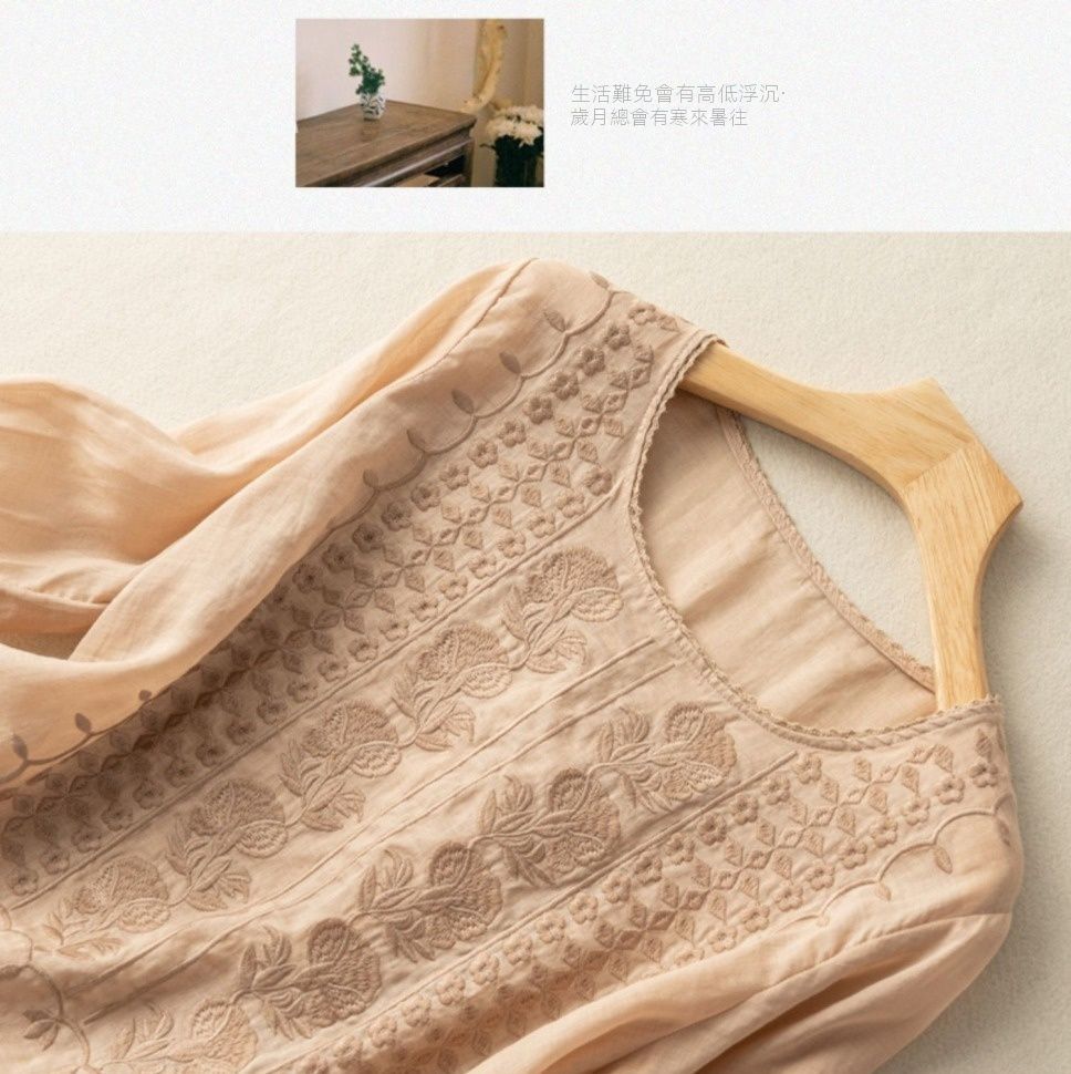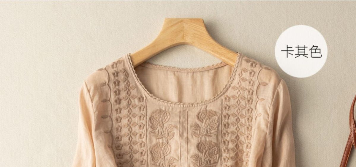 刺繡復古女士中袖上衣【買一送一】【白色】+【卡其色】各一件(每件低至649元)