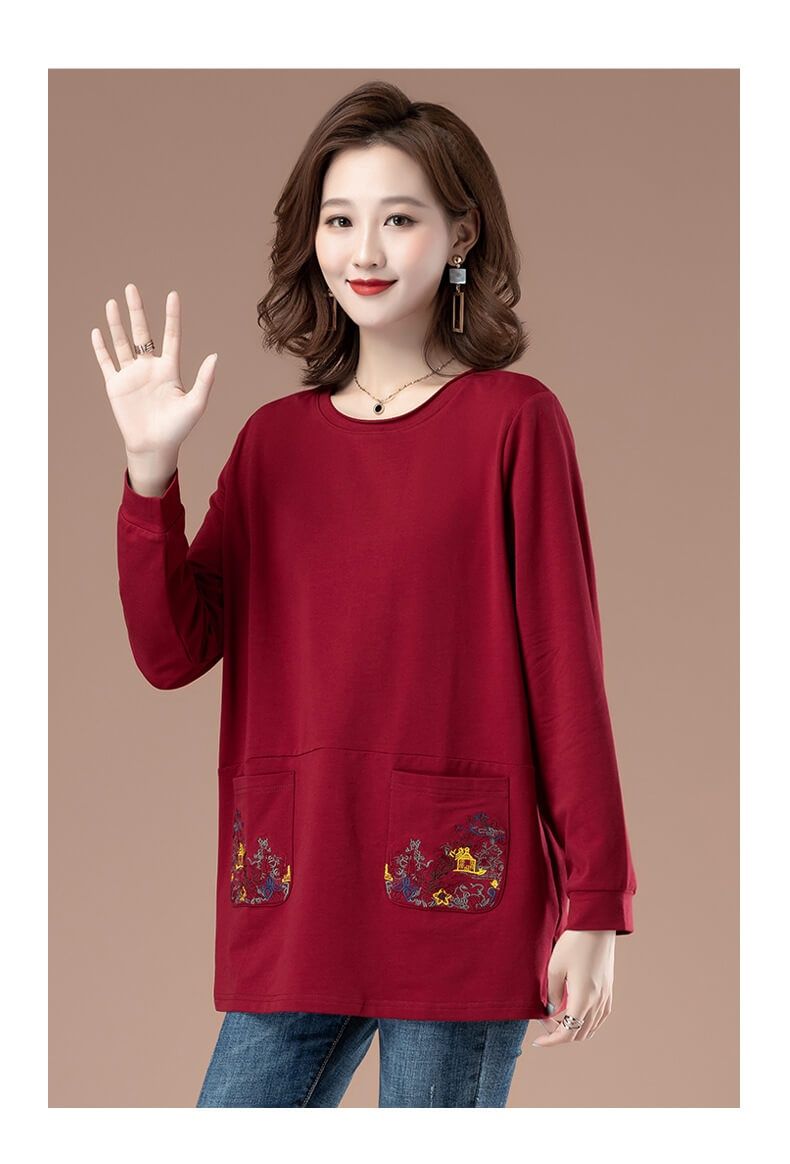 耐洗耐穿純棉女士大碼衛衣【買一送一】【紅色】+【咖啡色】各一件(每件649元)