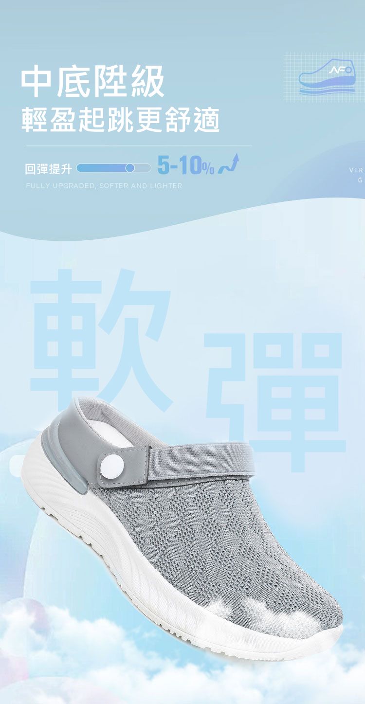 高彈防滑鞋底圓頭涼鞋【買一送一】灰色+黑色各一雙(到手兩雙,每雙均價549元!)