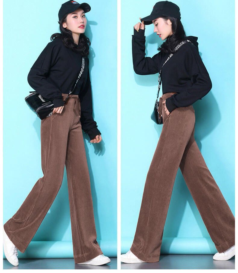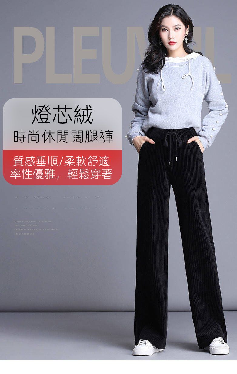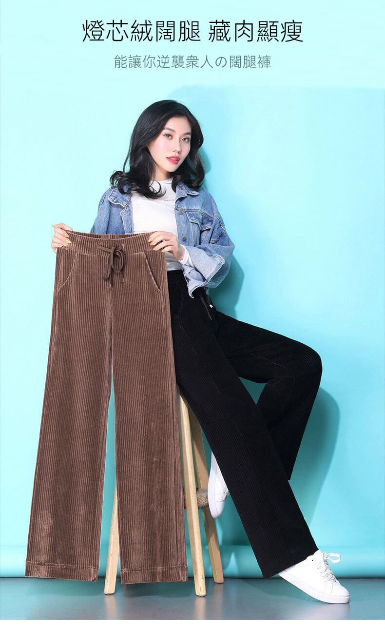 韓版燈芯絨闊腿褲【買一送一】【黑色】+【焦糖色】各一條(低至649元/條)