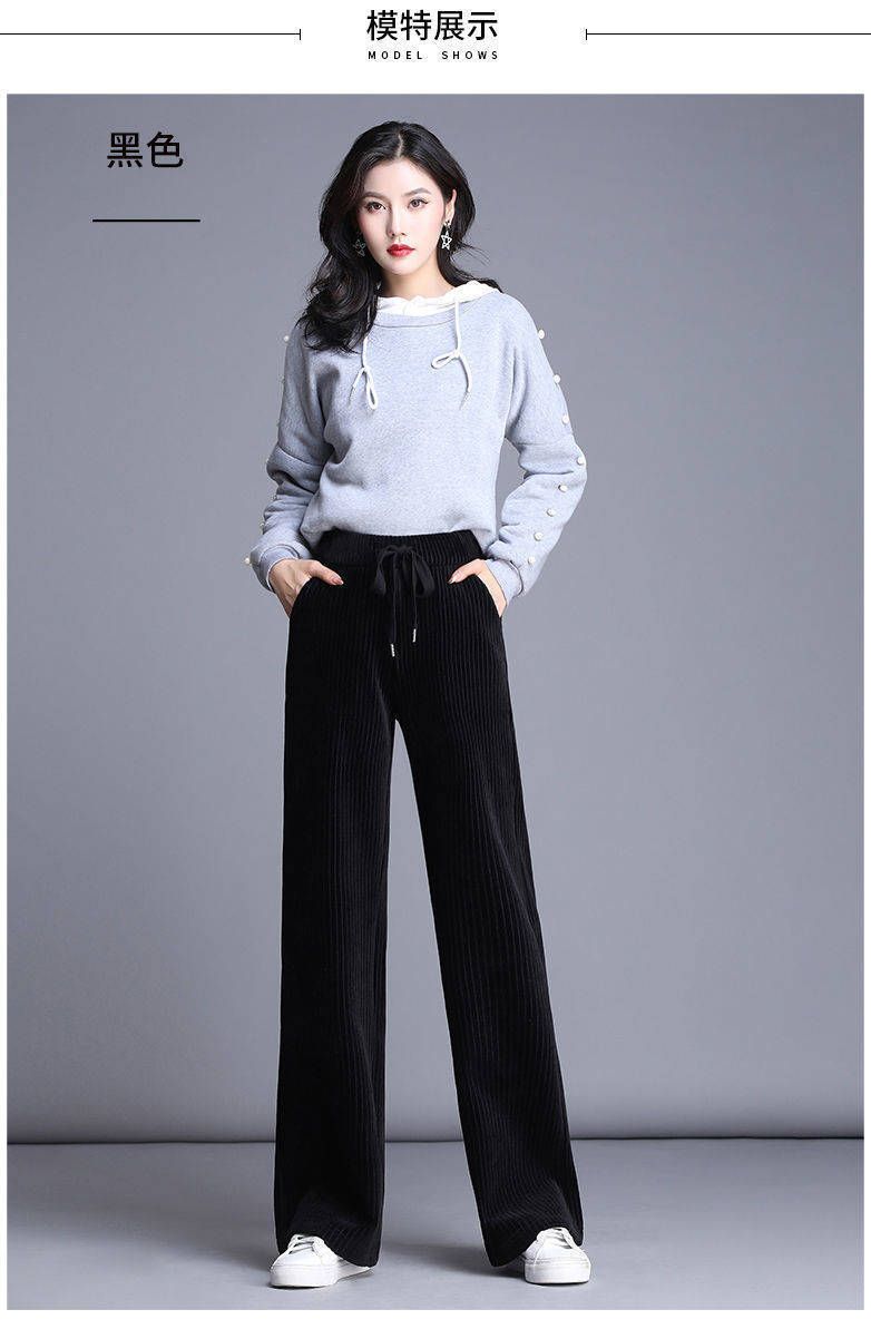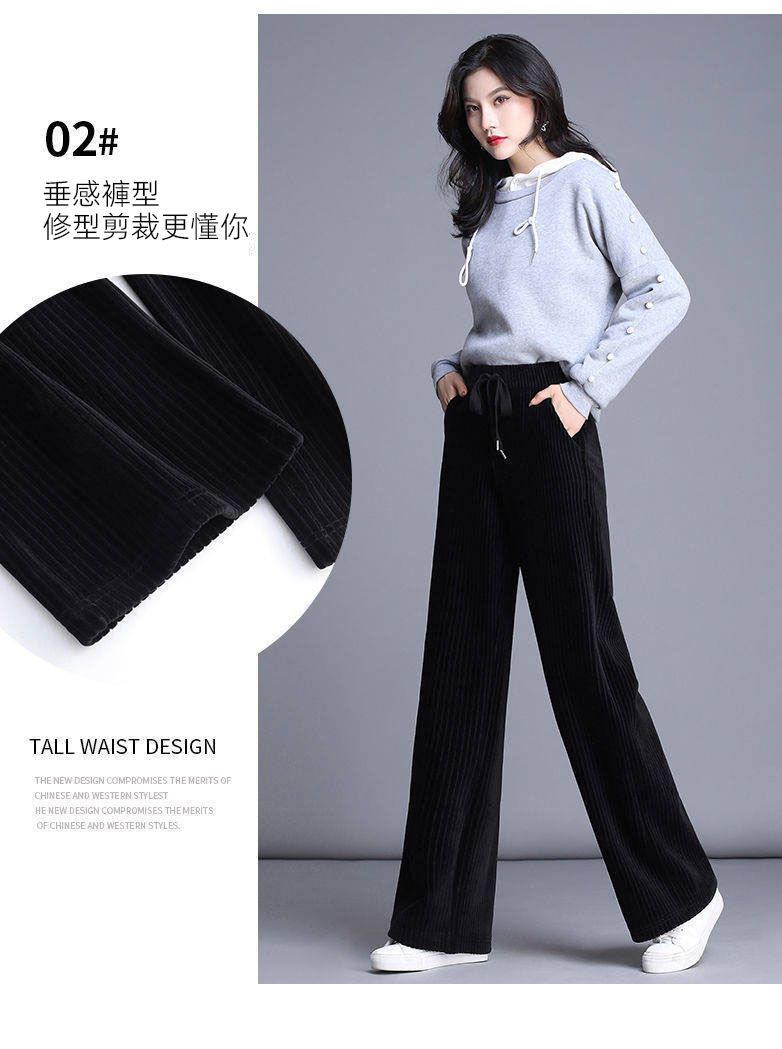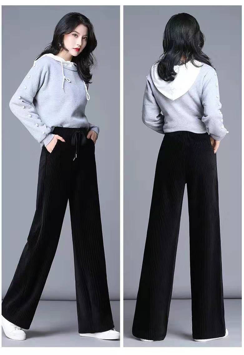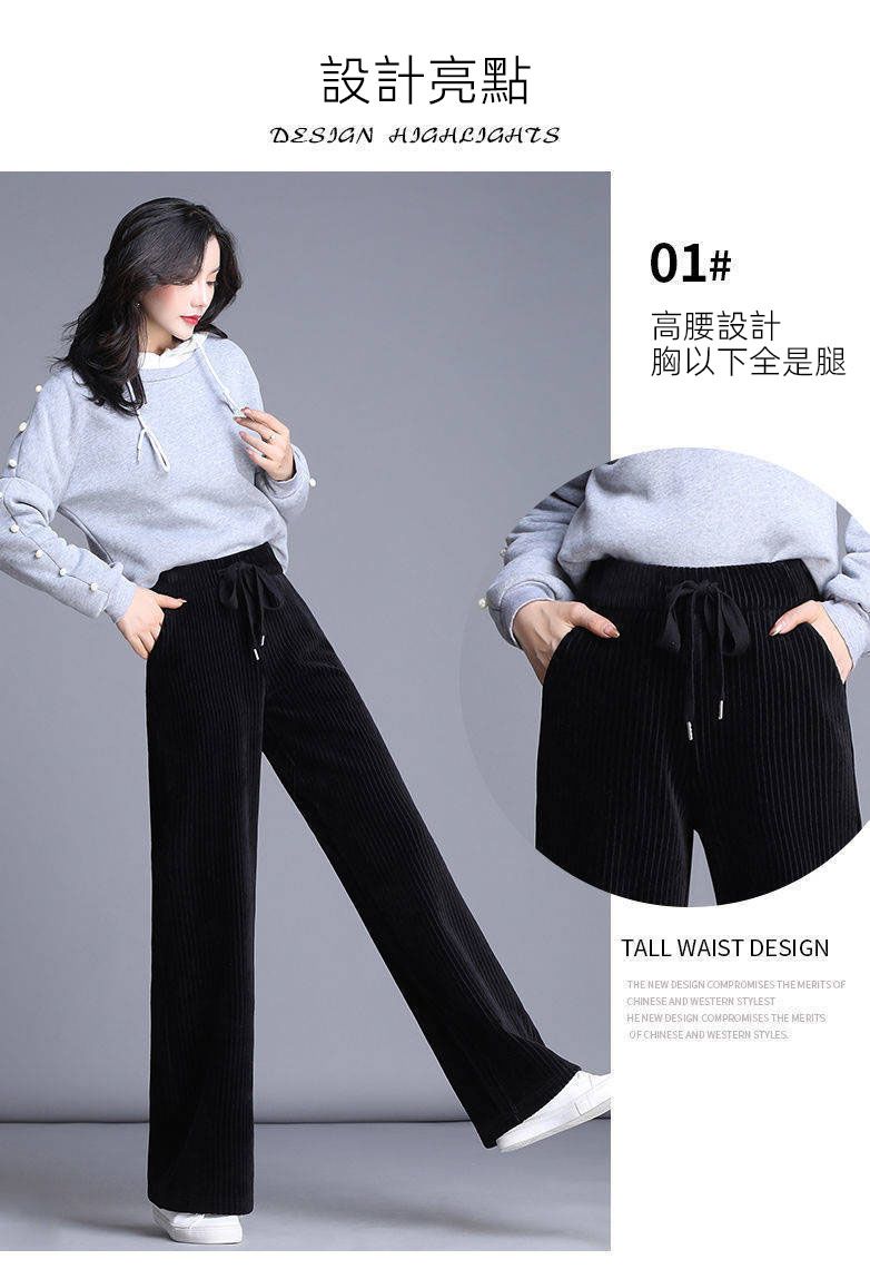 韓版燈芯絨闊腿褲【買一送一】【黑色】+【灰色】各一條(低至649元/條)