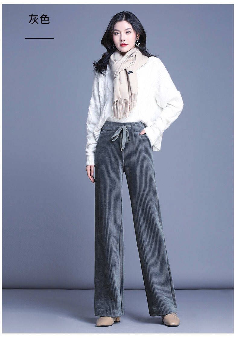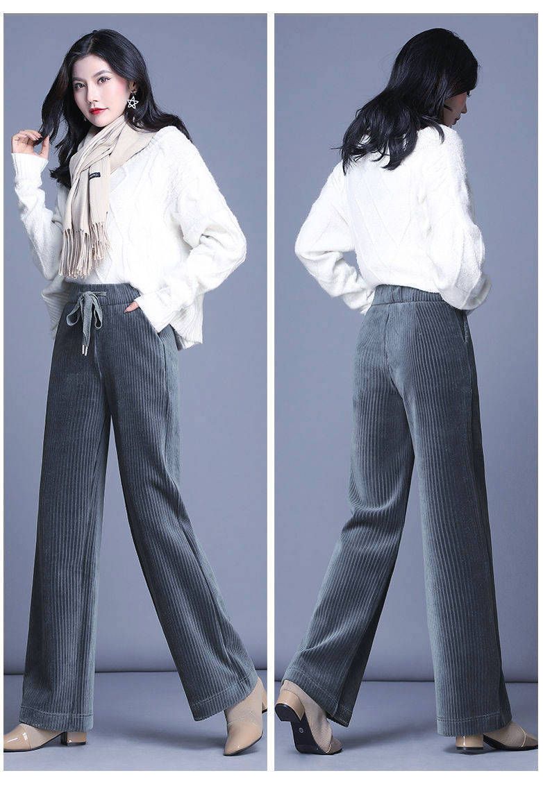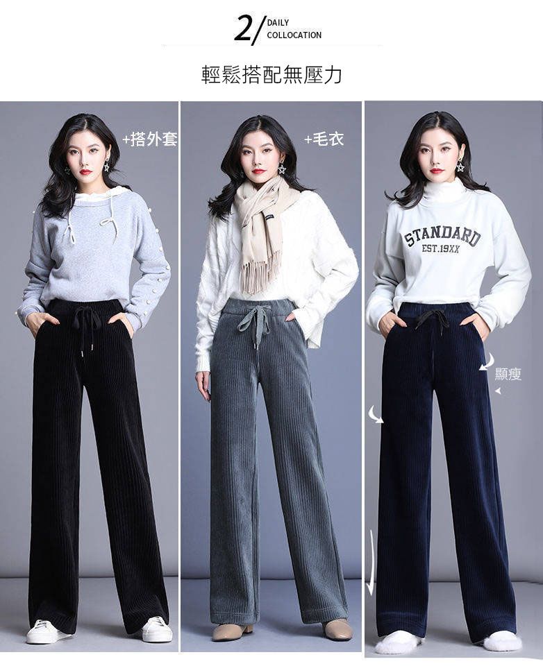 韓版燈芯絨闊腿褲【買一送一】【灰色】+【焦糖色】各一條(低至649元/條)