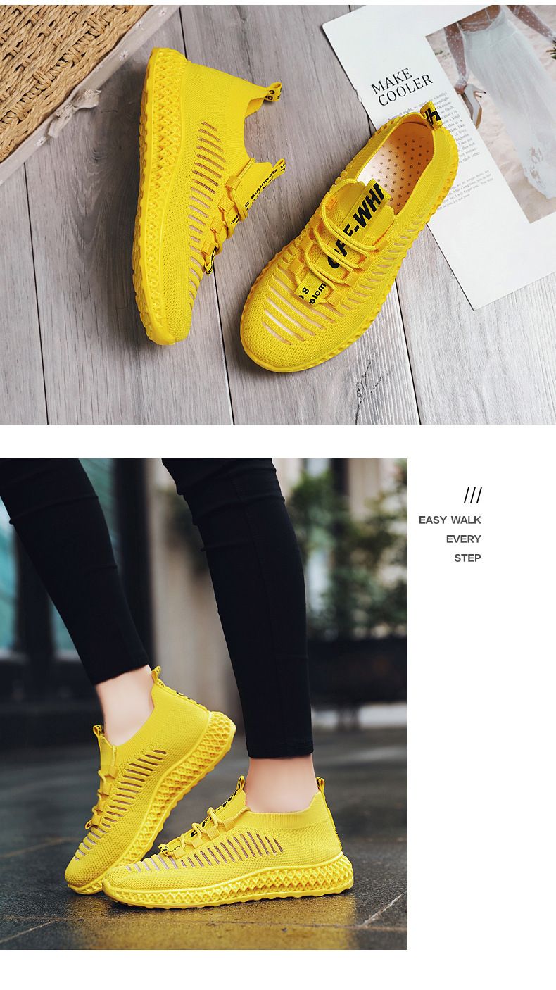 【慶祝銷量破萬!限時買一送一!】飛織運動女鞋【黃色】+【白色】各一雙