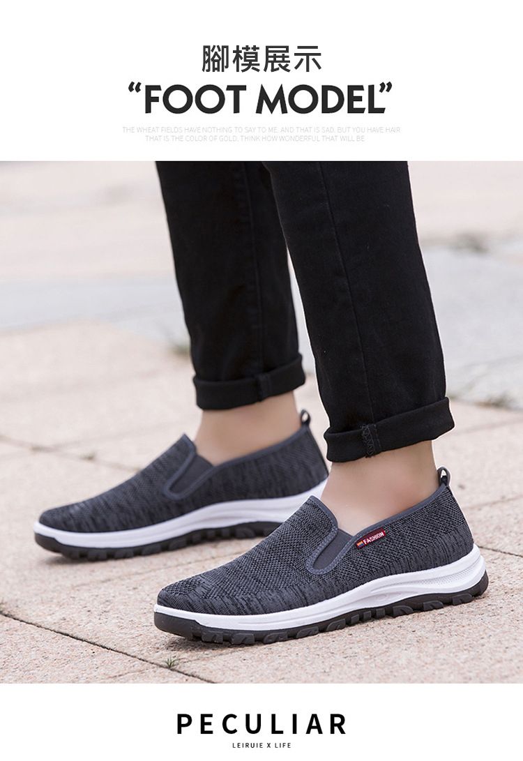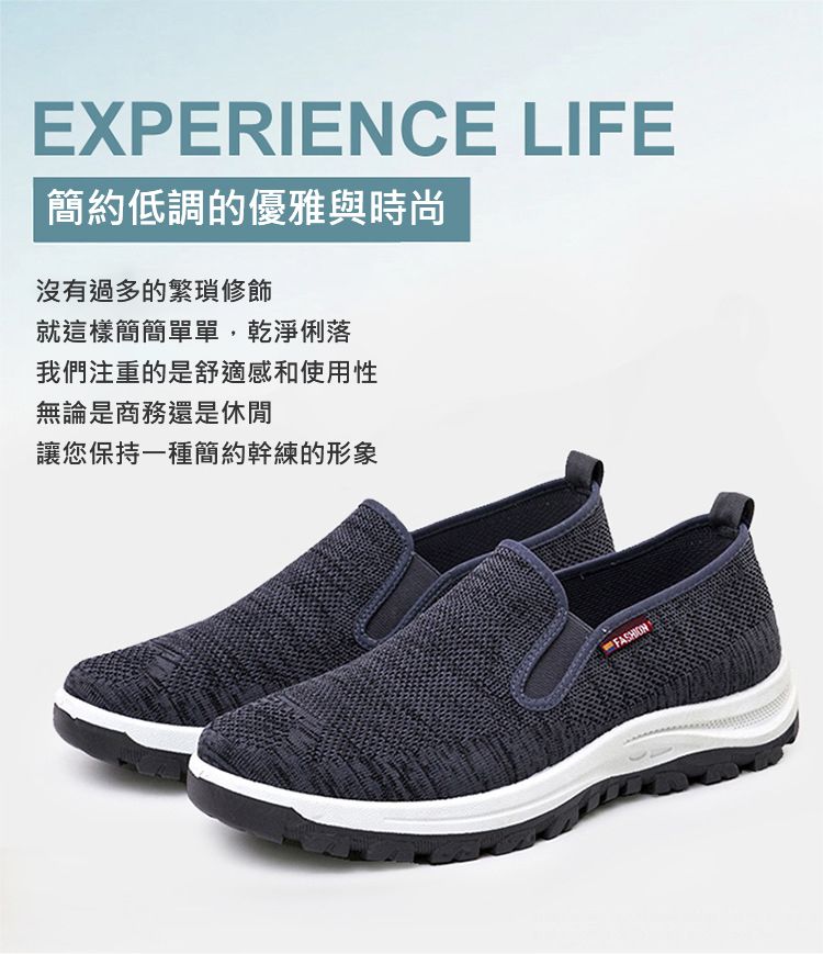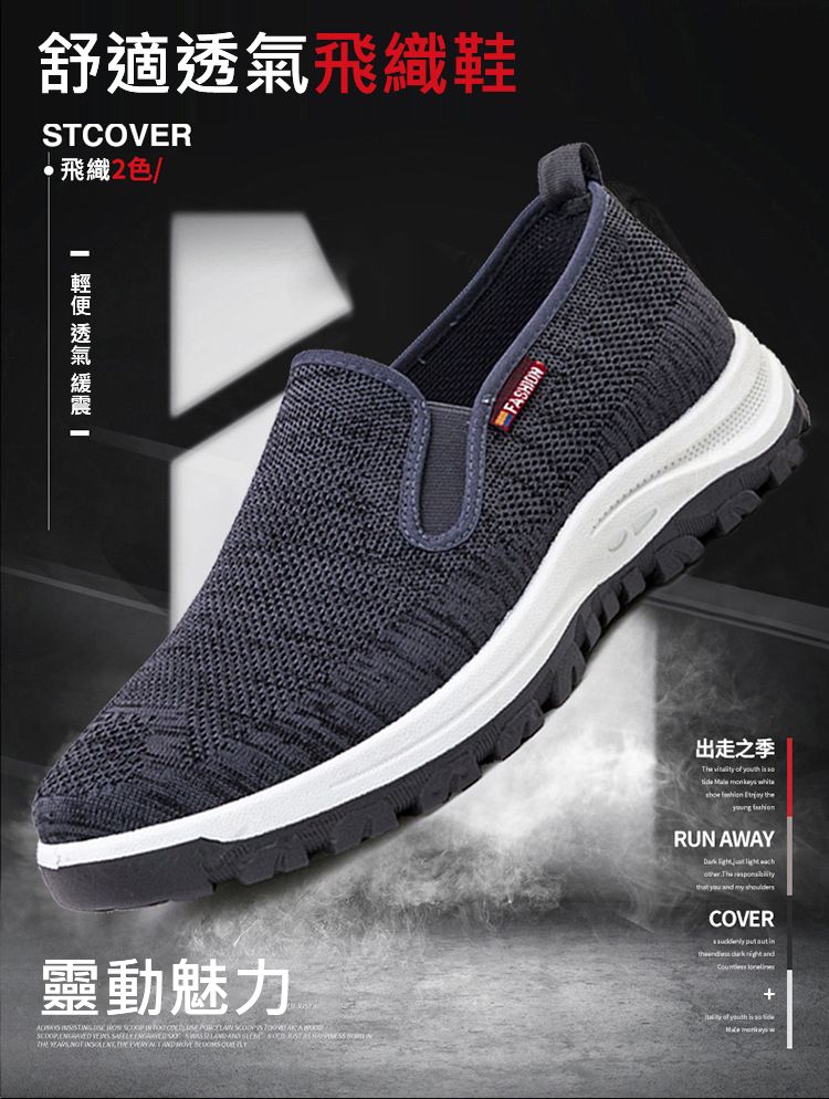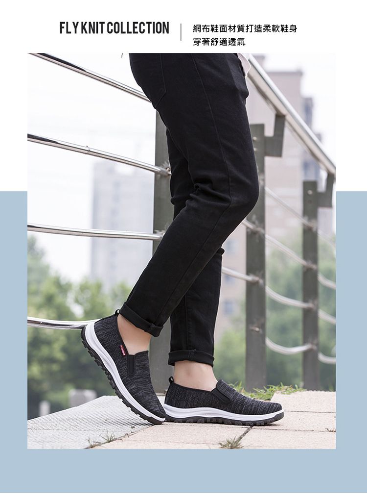 新款軟底耐磨一腳蹬飛織鞋【買一送一】藍色+黑色各一雙
