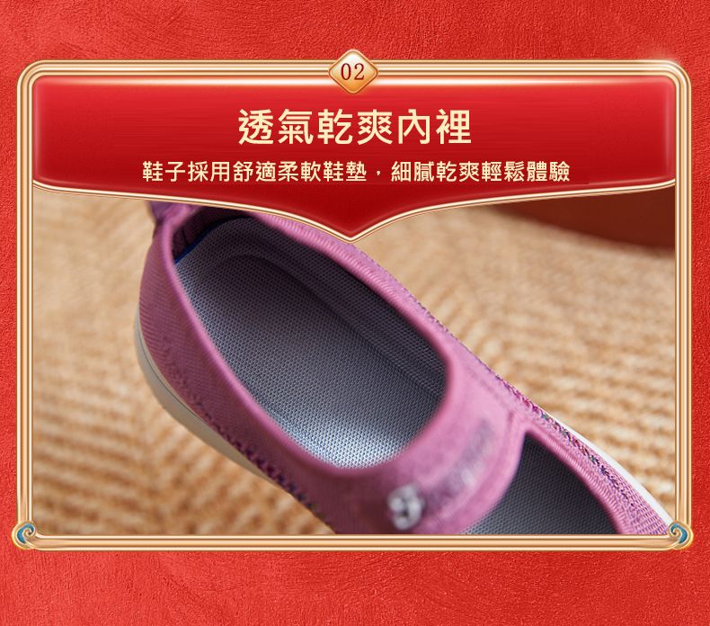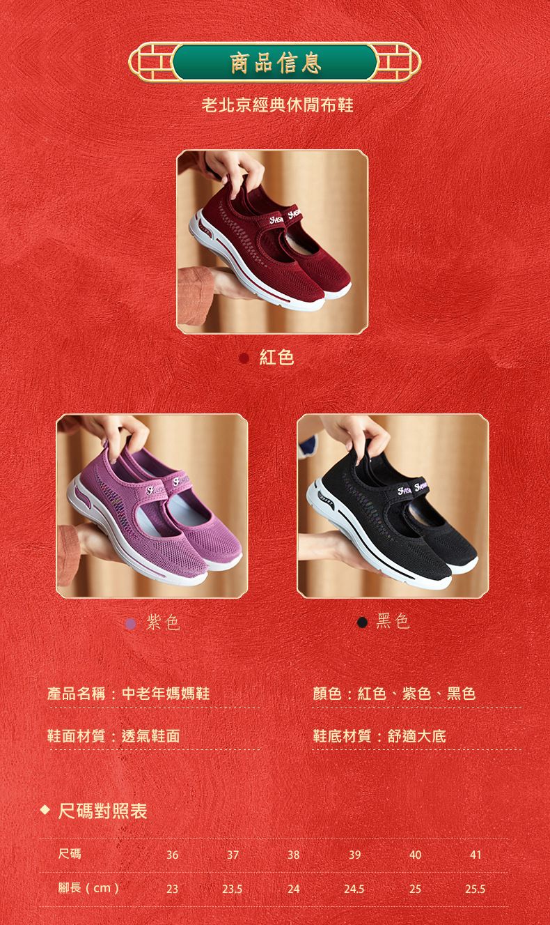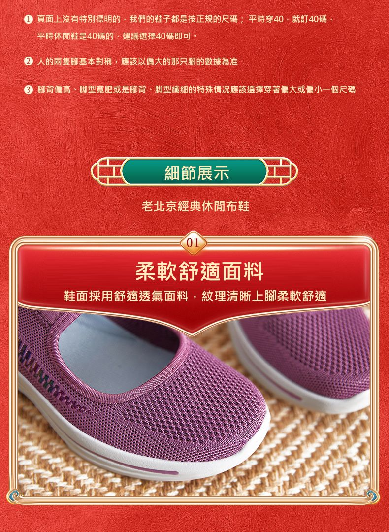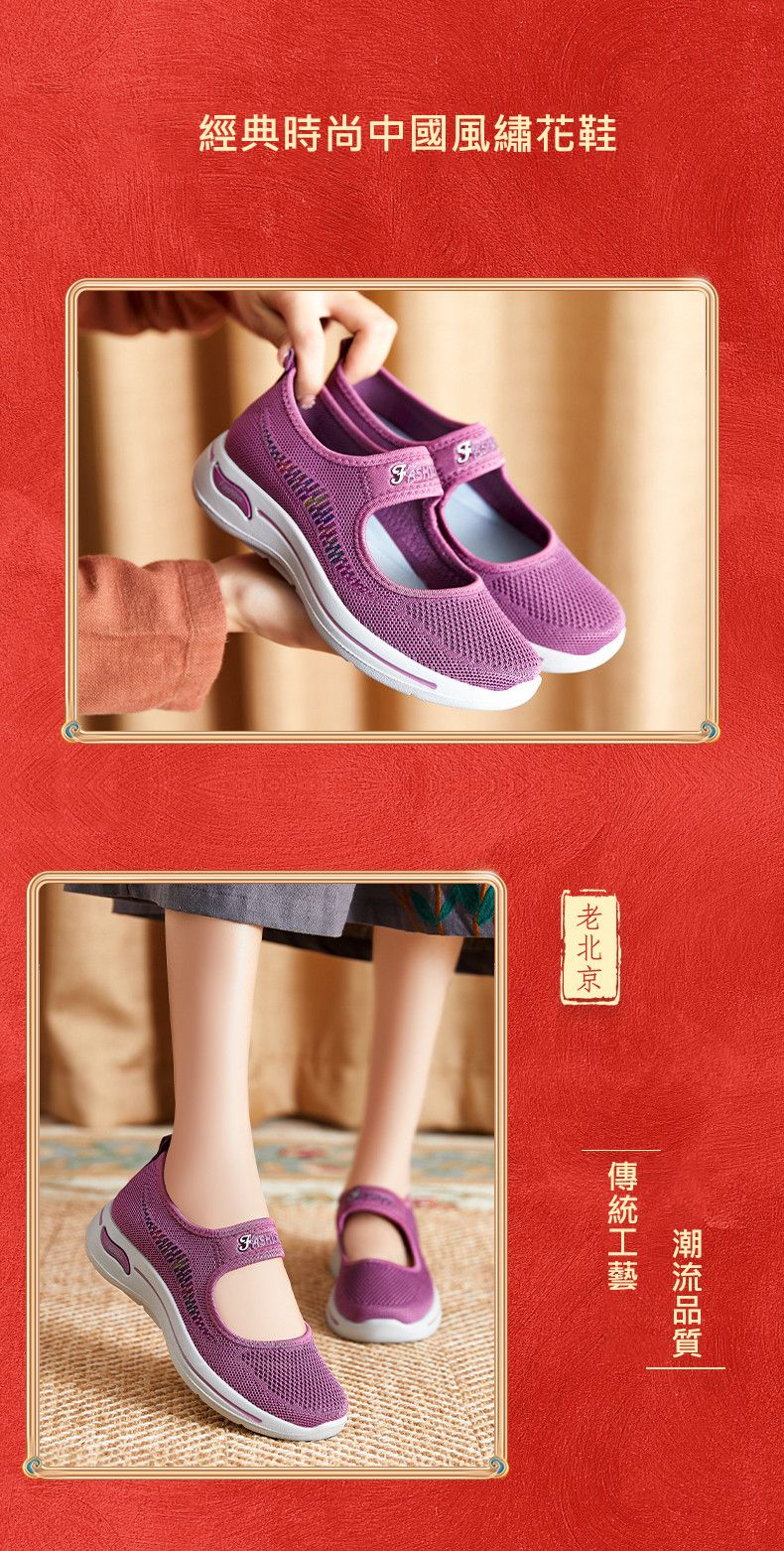 經典中國風中老年媽媽繡花鞋【買一送一】【紅色】+【紫色】各一雙