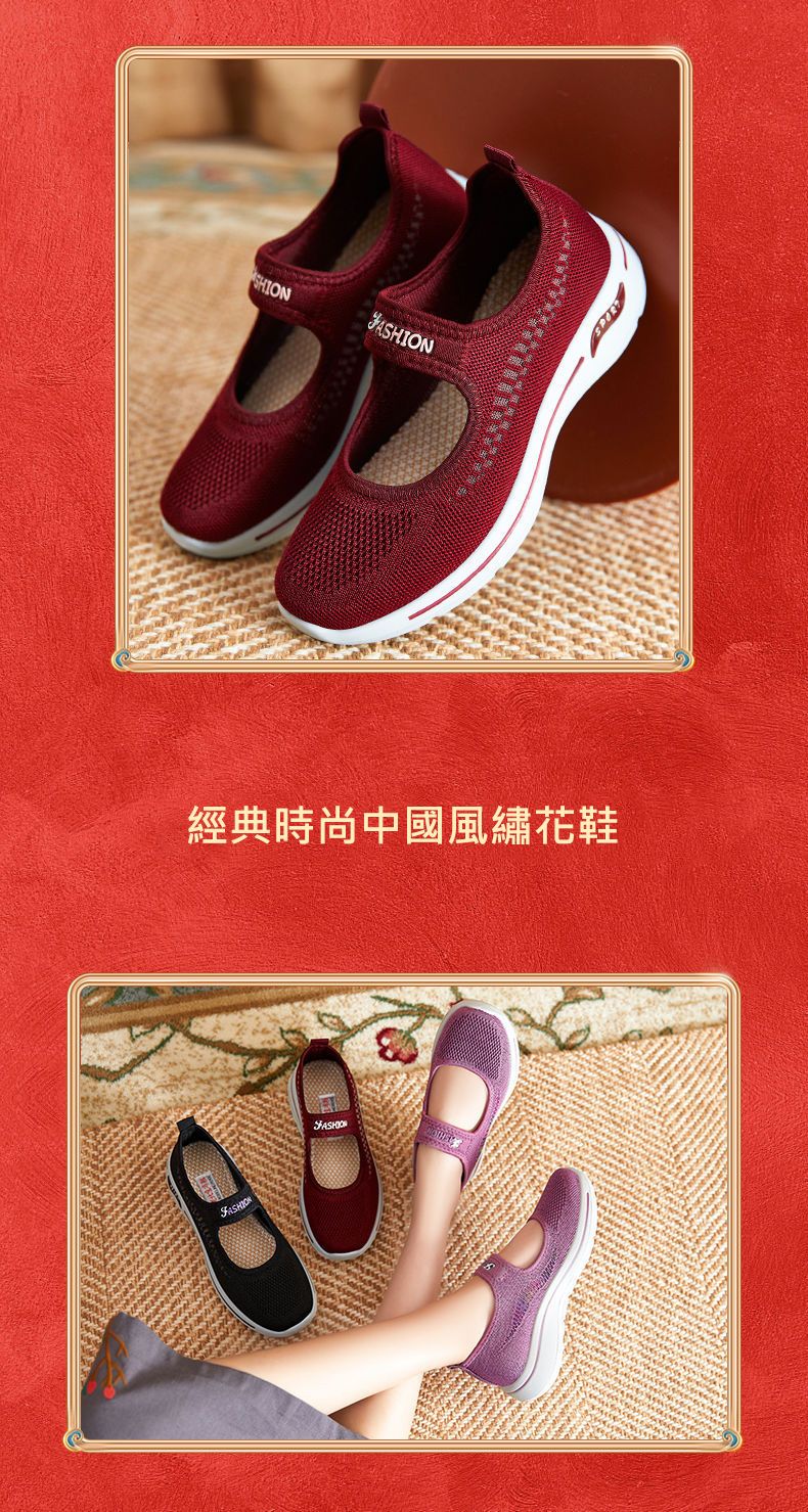 經典中國風中老年媽媽繡花鞋【買一送一】【紅色】+【灰色】各一雙