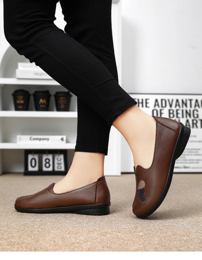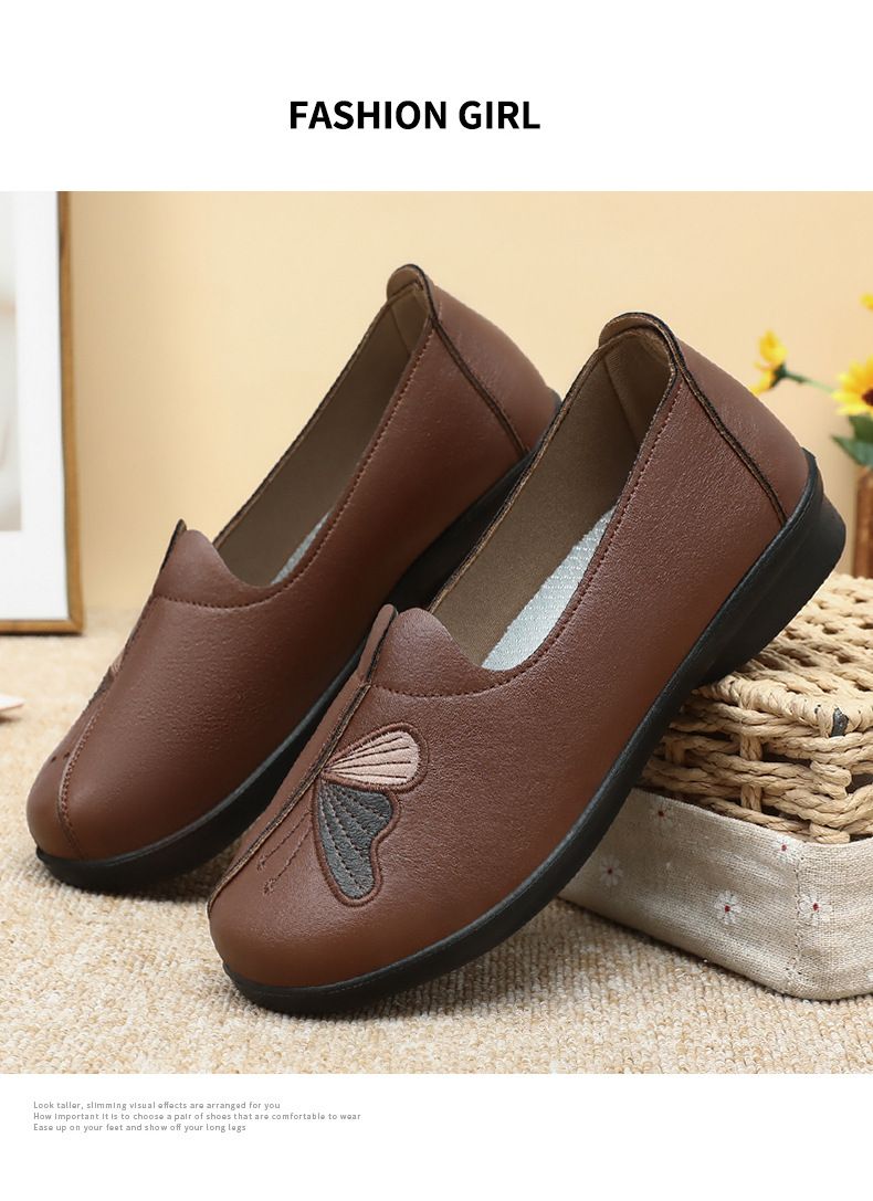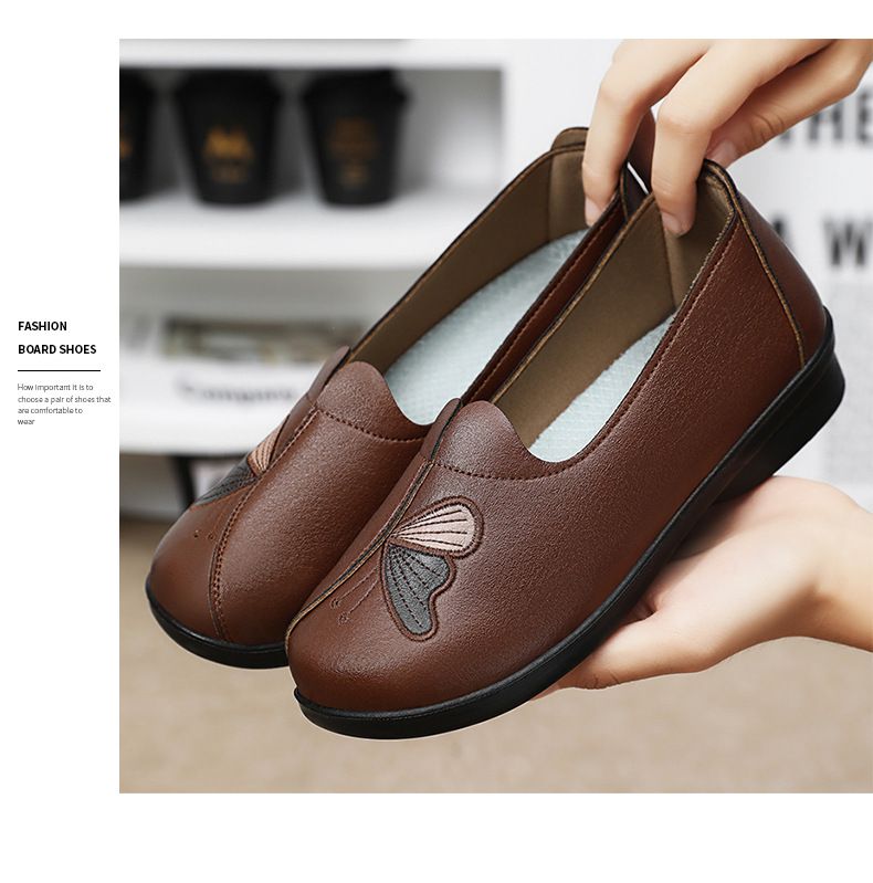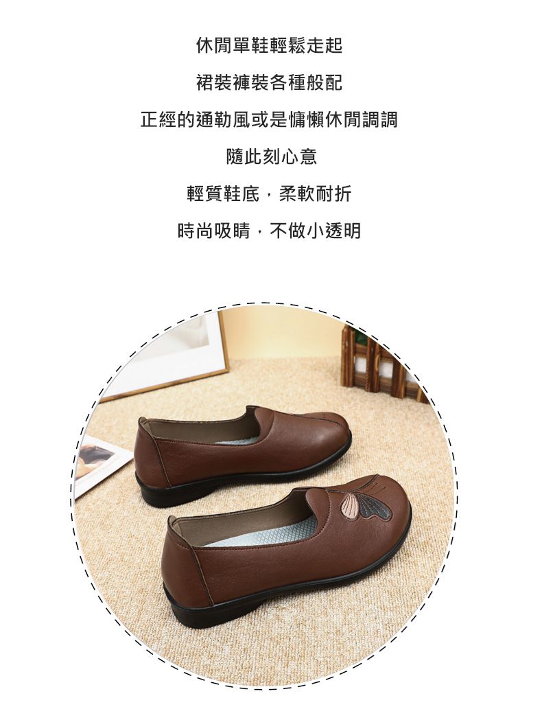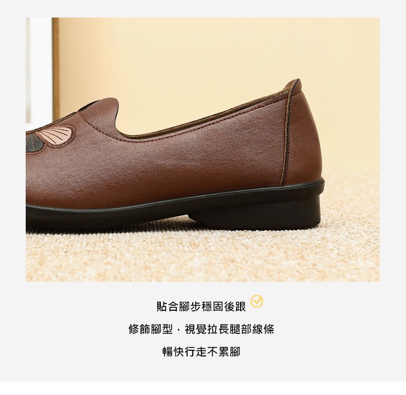 【蝴蝶繡花】柔軟舒適淺口女鞋【咖色】一雙