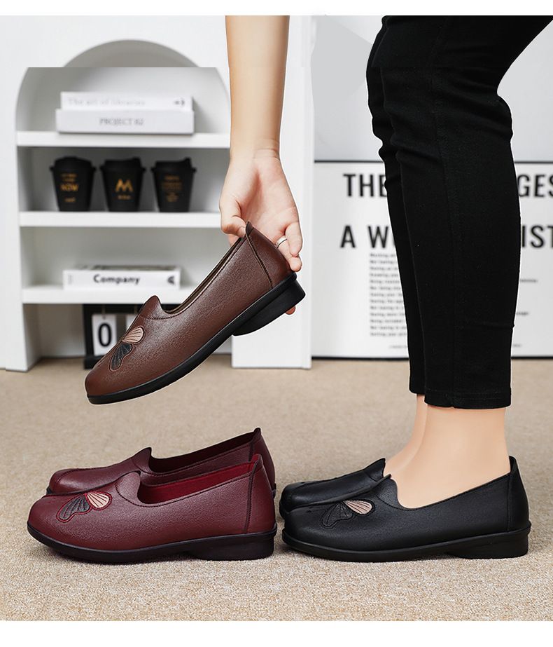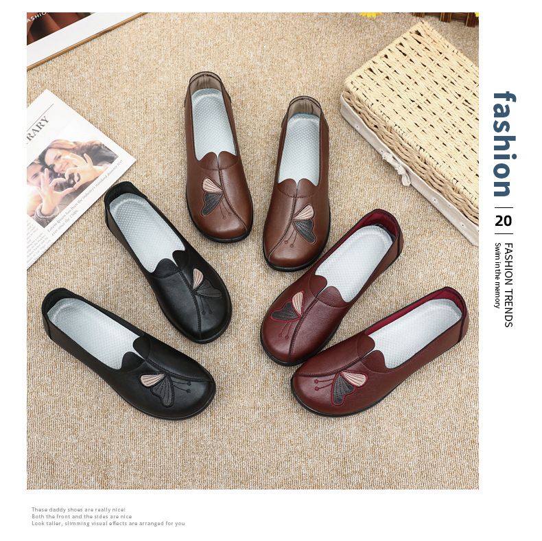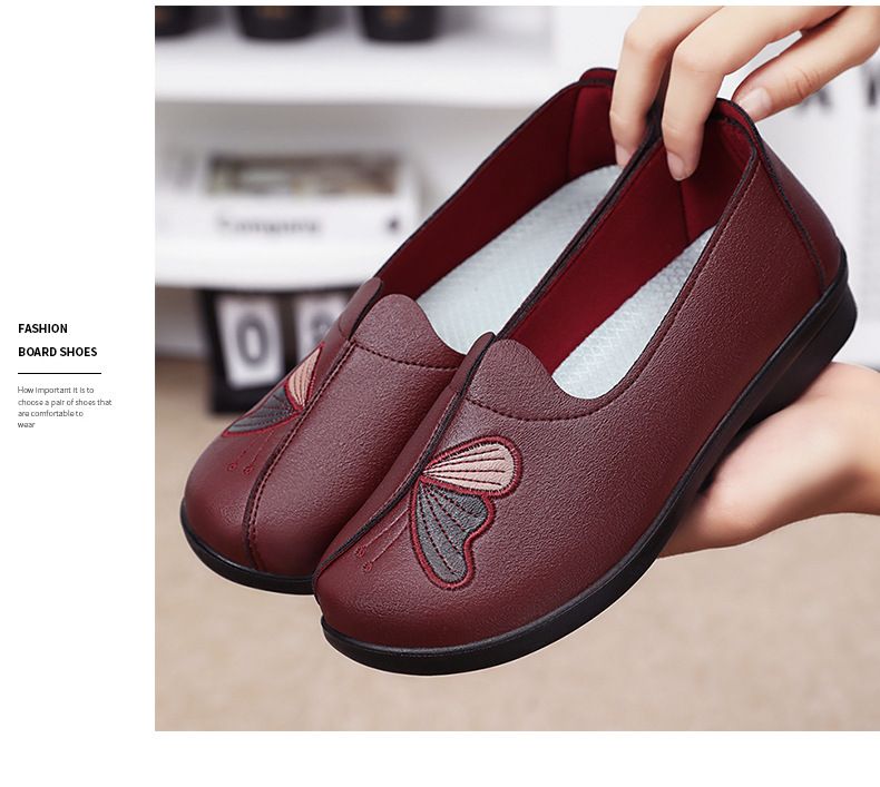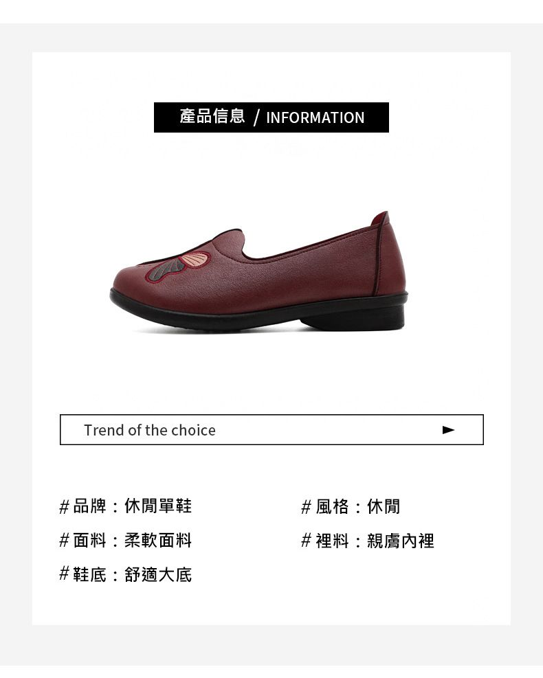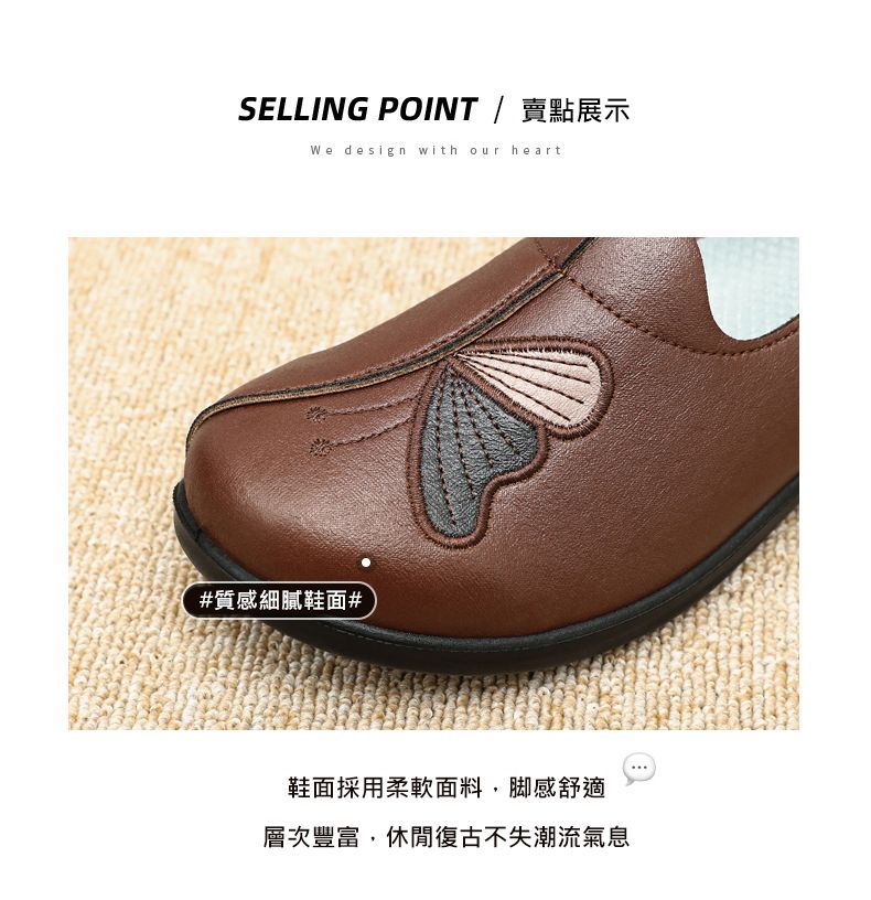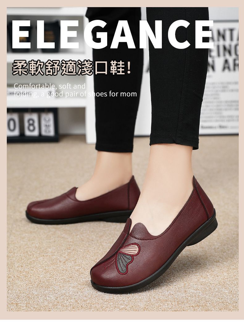 【蝴蝶繡花】柔軟舒適淺口女鞋【紅色】+【咖色】各一雙(優惠400)