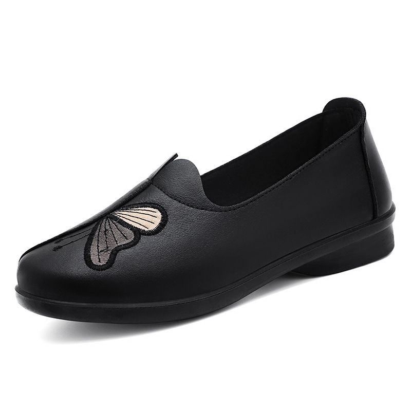 【蝴蝶繡花】柔軟舒適淺口女鞋【黑色】一雙