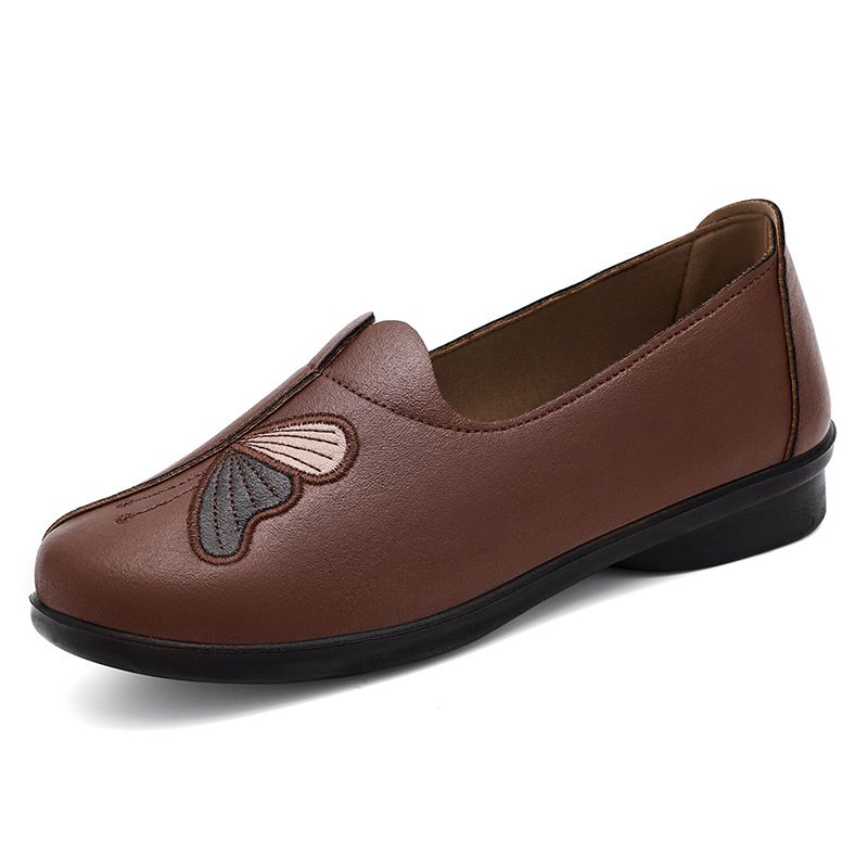 【蝴蝶繡花】柔軟舒適淺口女鞋【咖色】一雙
