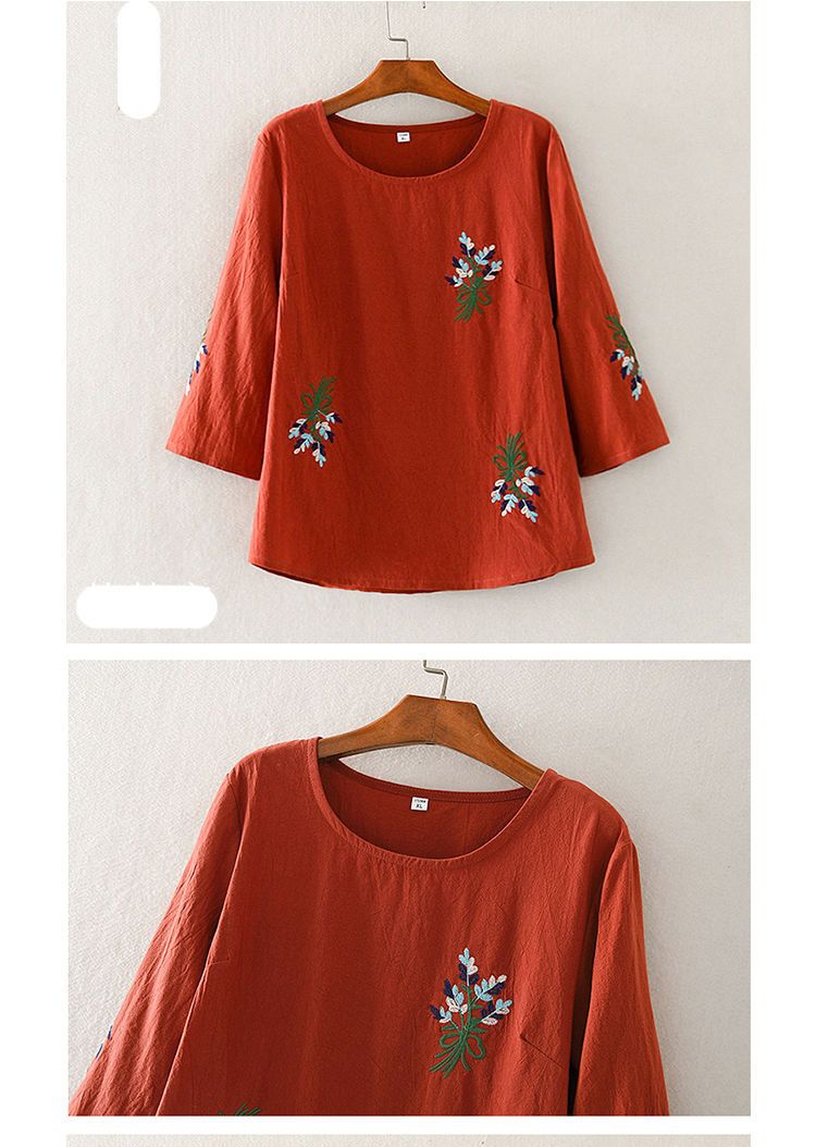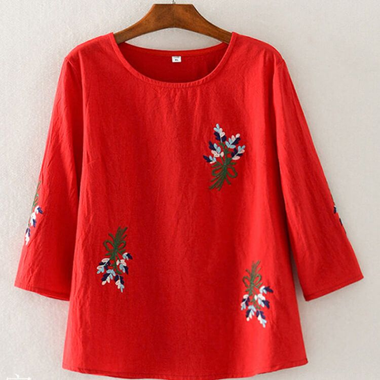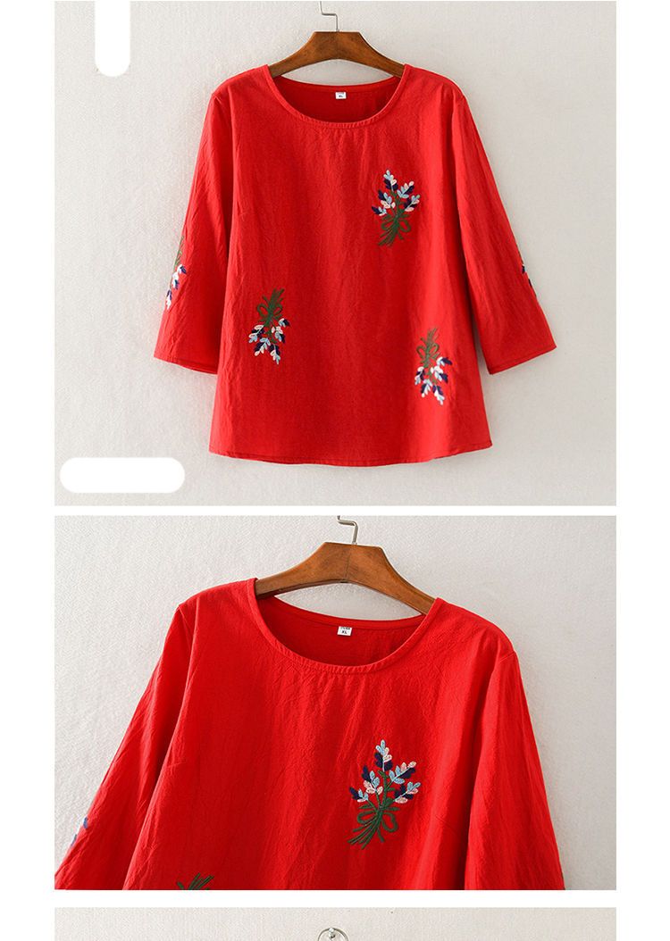 透氣涼爽春夏刺繡女士T恤【買一送一】【紅色】+【青色】各一件(每件499元)