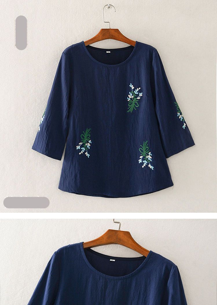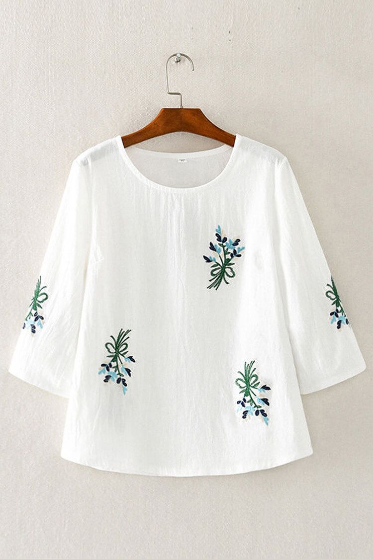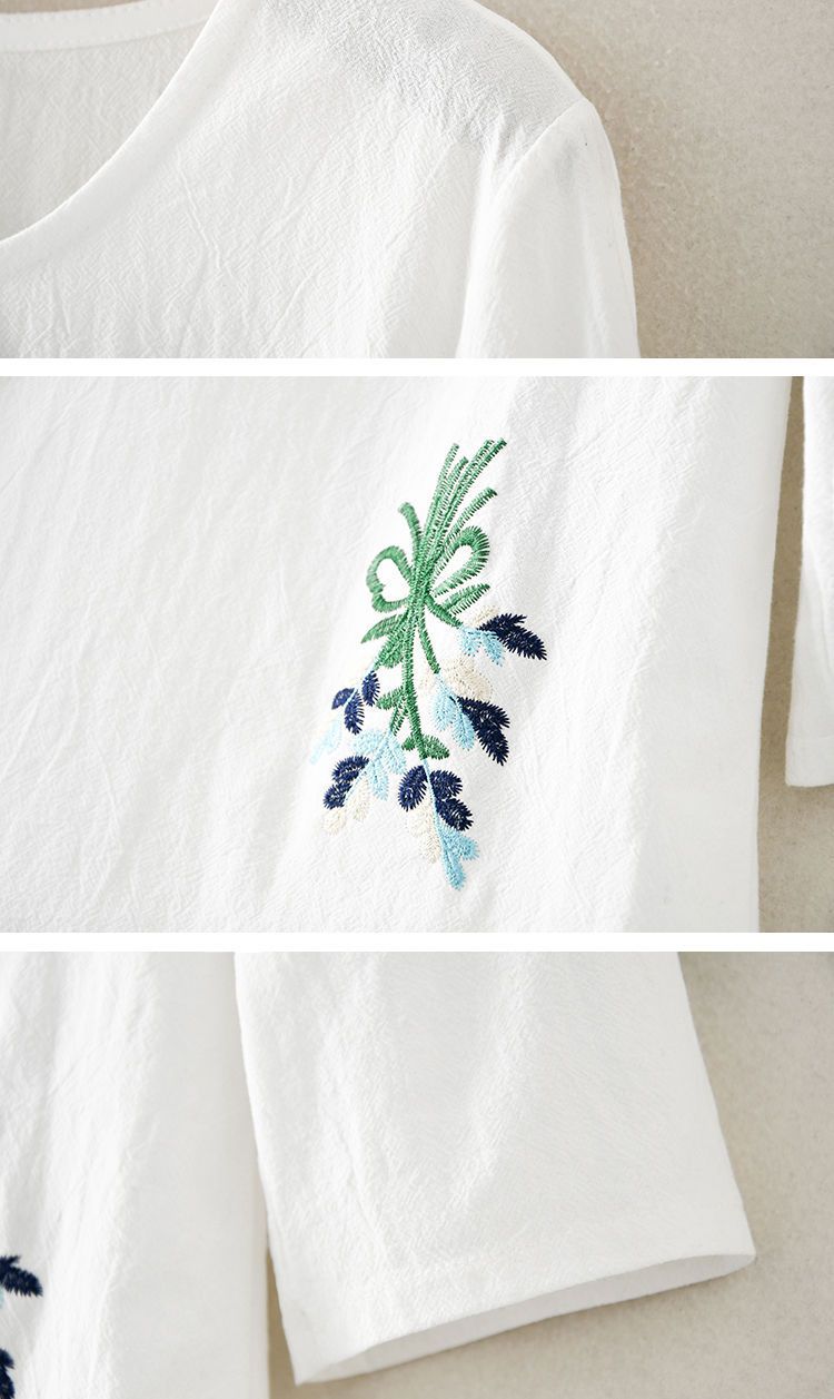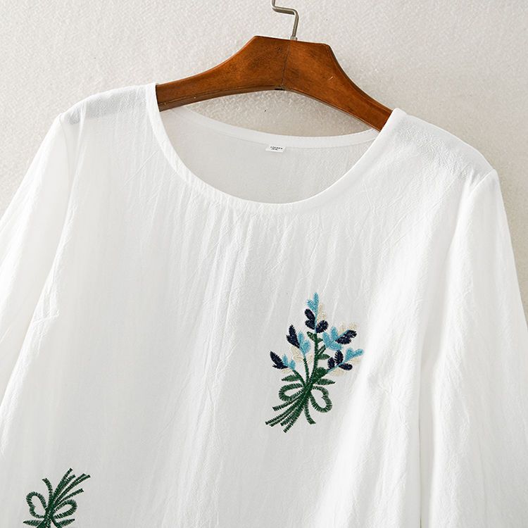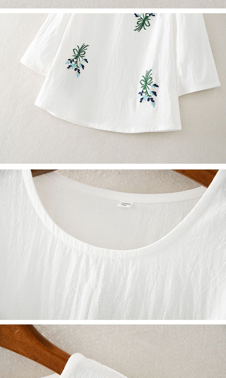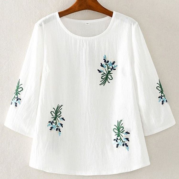 透氣涼爽春夏刺繡女士T恤【買一送一】【白色】+【青色】各一件(每件499元)