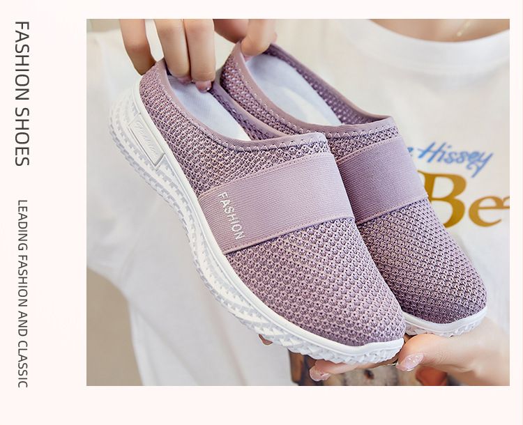 【穿脫自如!】女士簡約時尚飛織拖鞋【灰色】+【紫色】各一雙(優惠400)