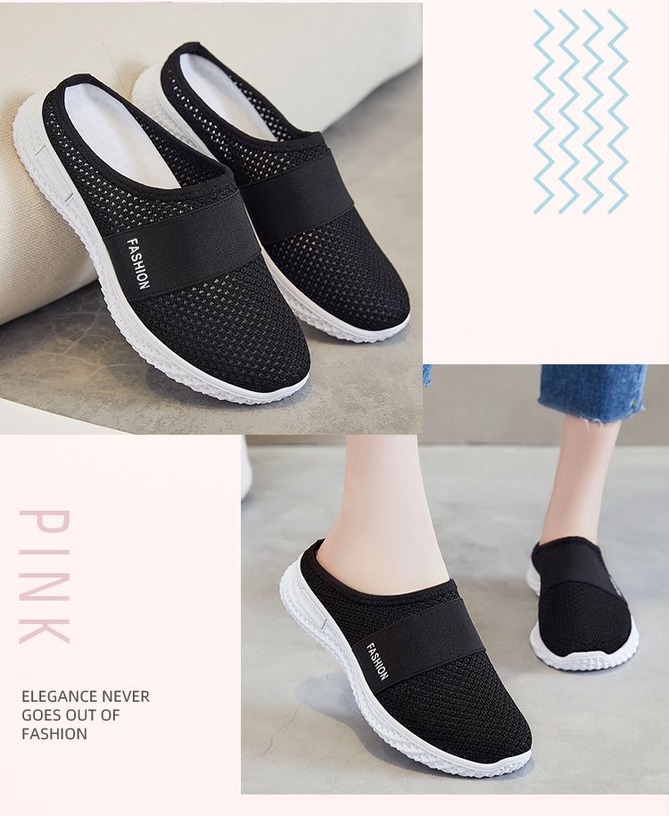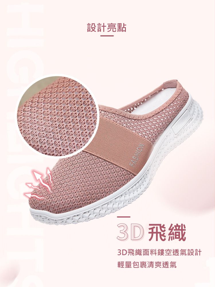 【穿脫自如!】女士簡約時尚飛織拖鞋【黑色】+【粉紅色】各一雙(優惠400)