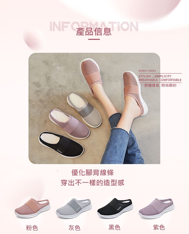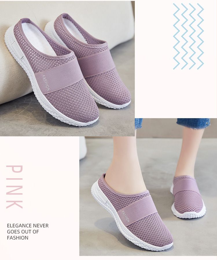 【穿脫自如!】女士簡約時尚飛織拖鞋【粉紅色】+【紫色】各一雙(優惠400)
