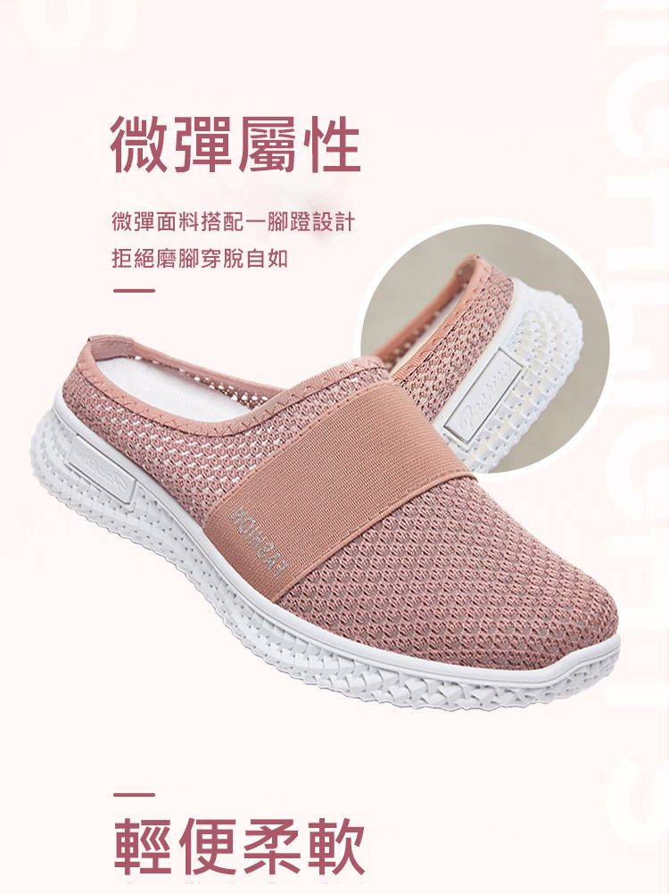 【穿脫自如!】女士簡約時尚飛織拖鞋【灰色】+【粉紅色】各一雙(優惠400)