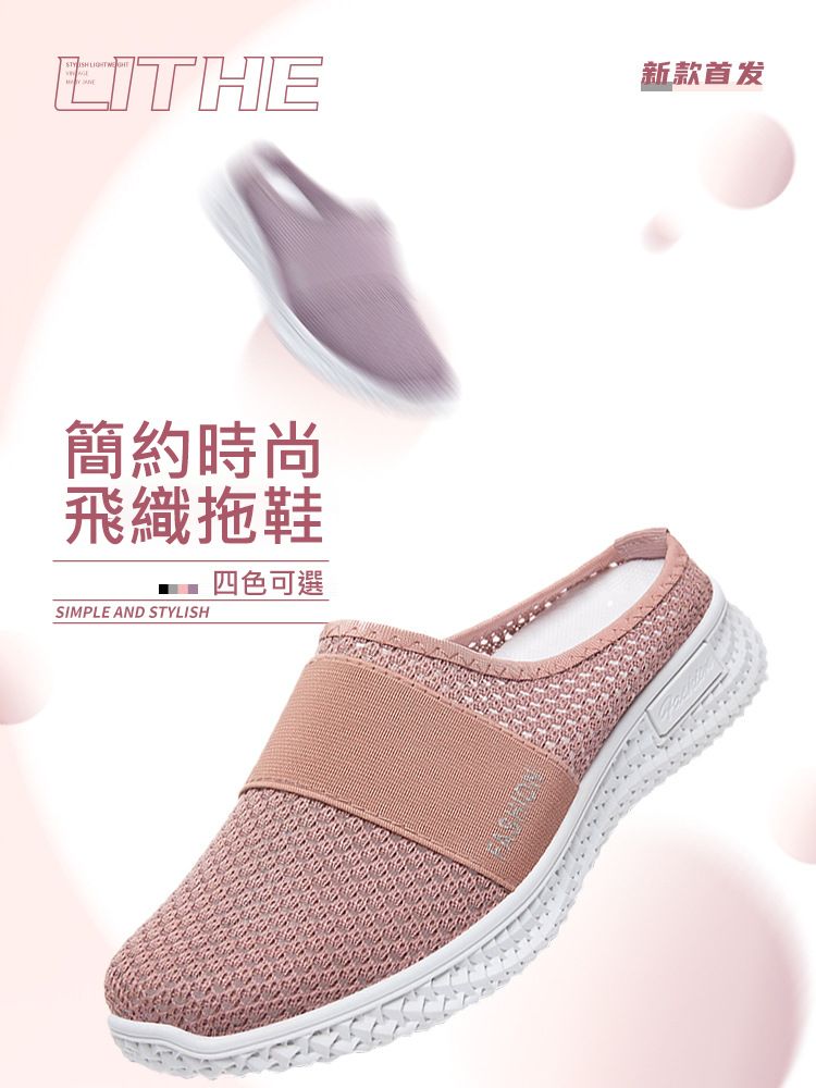 【穿脫自如!】女士簡約時尚飛織拖鞋【粉紅色】一雙