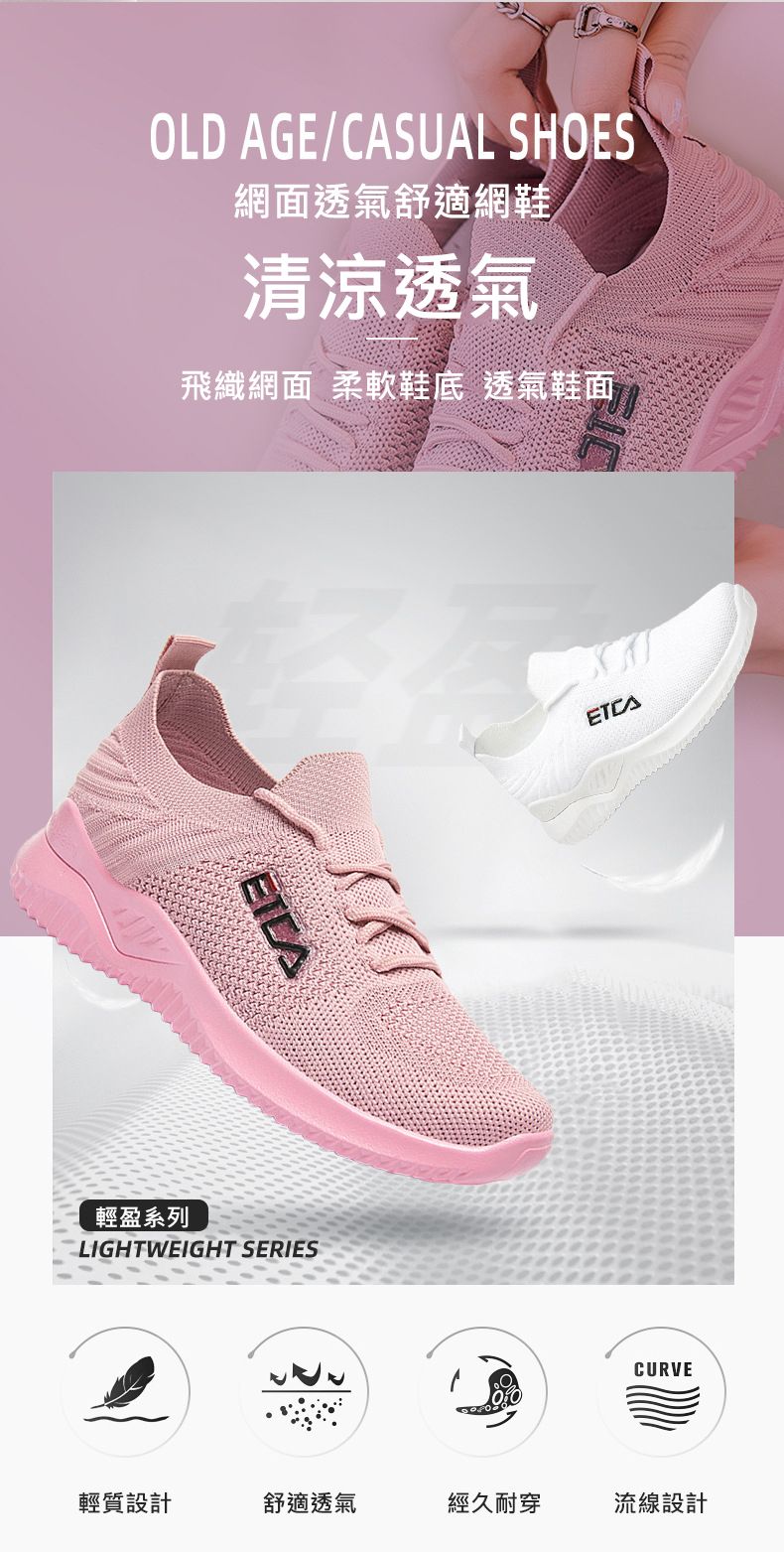 媽媽透氣舒適網鞋【買一送一】【白色】+【粉色】各一雙