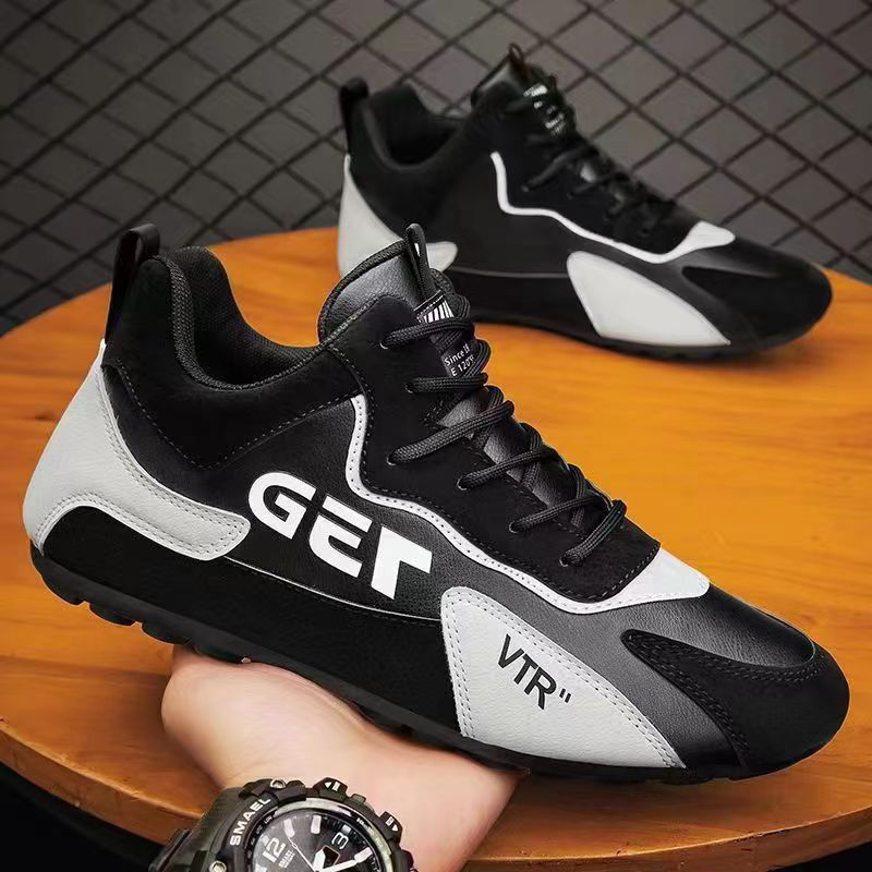 【透氣百搭】春季韓版復古潮流皮面防滑男士跑鞋【黑色】+【白色】各一雙(優惠400)