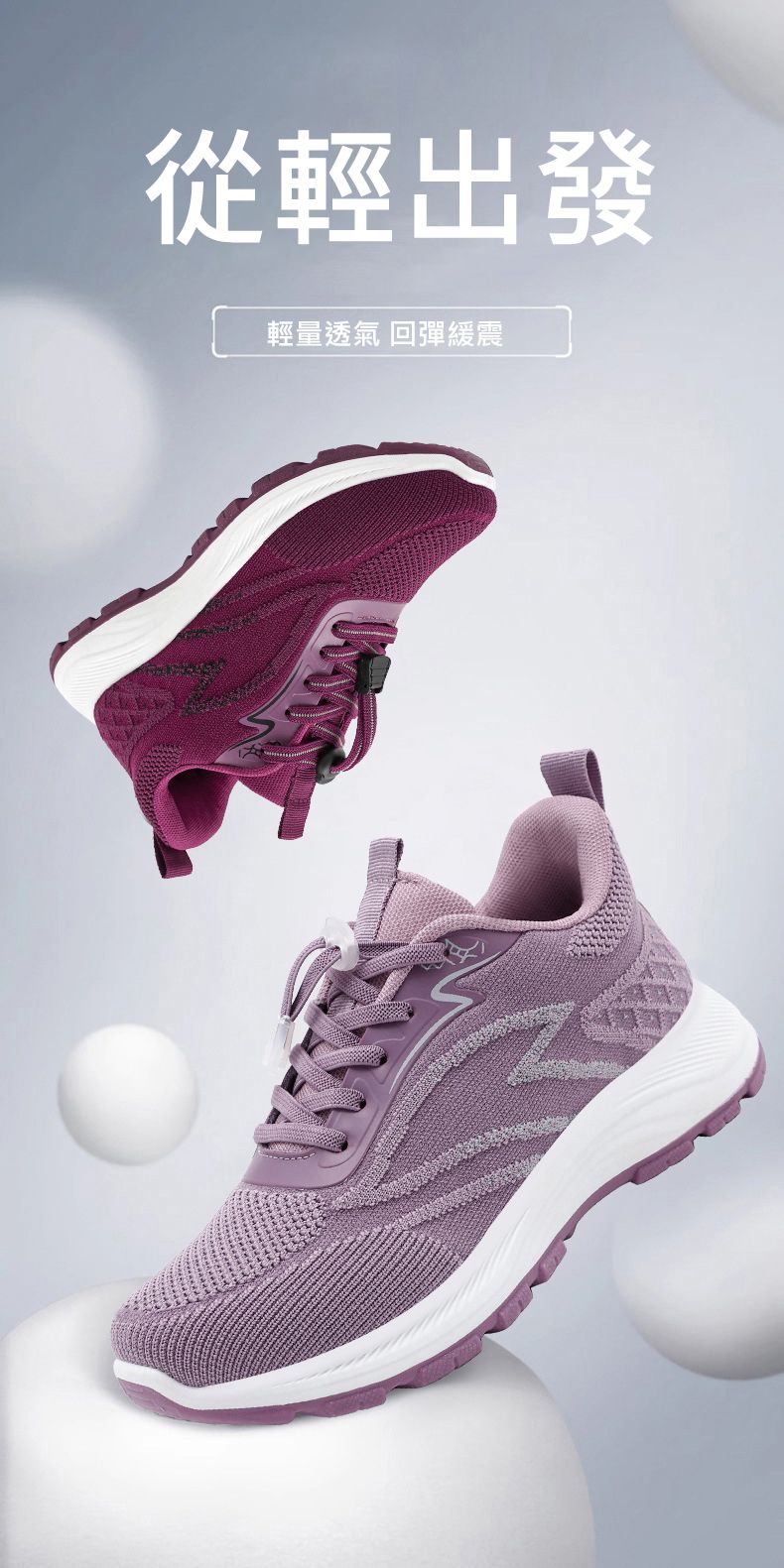 輕便緩震柔軟透氣防滑健步鞋【香芋紫】一雙