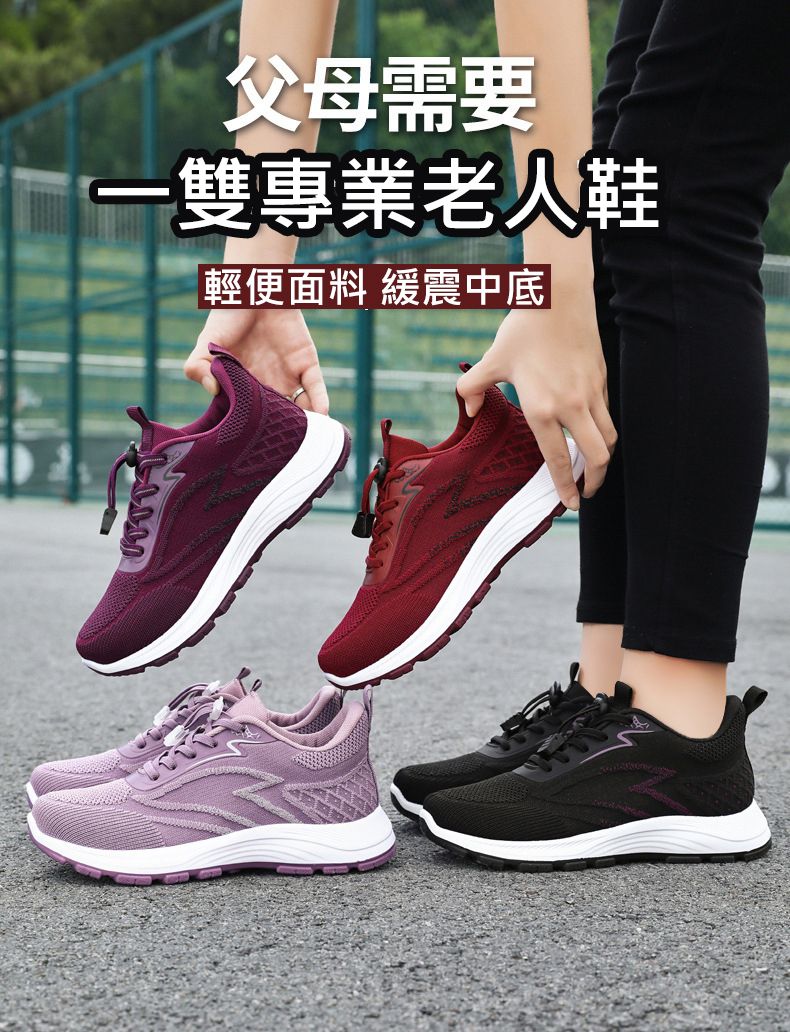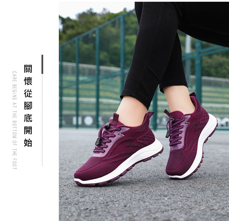 輕便緩震柔軟透氣防滑健步鞋【棗紅色】+【香芋紫】各一雙(到手兩雙,每雙均價798元!)