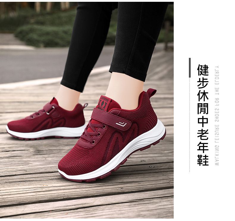【摯愛媽媽專屬】中老年魔術貼媽媽鞋【棗紅色】+【深紫色】各一雙(優惠400)