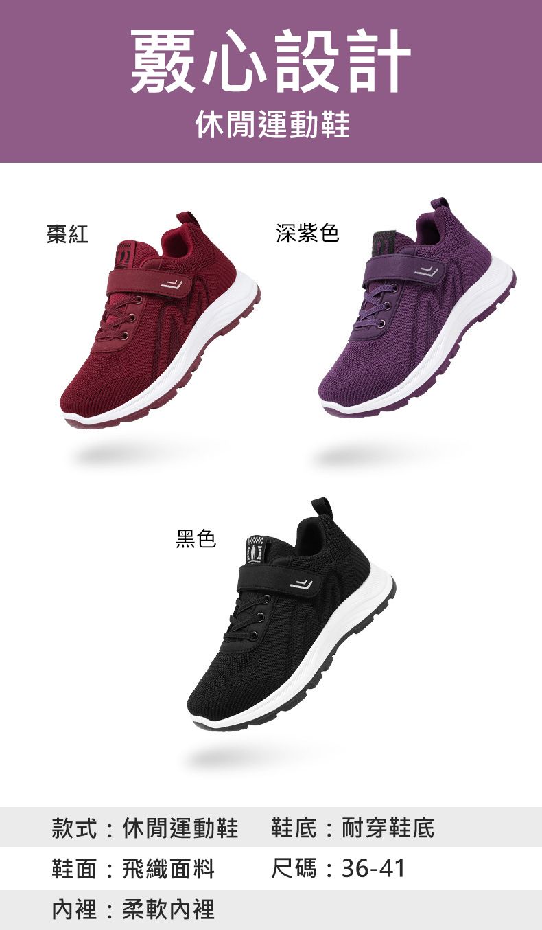 【摯愛媽媽專屬】中老年魔術貼媽媽鞋【黑色】+【深紫色】各一雙(優惠400)