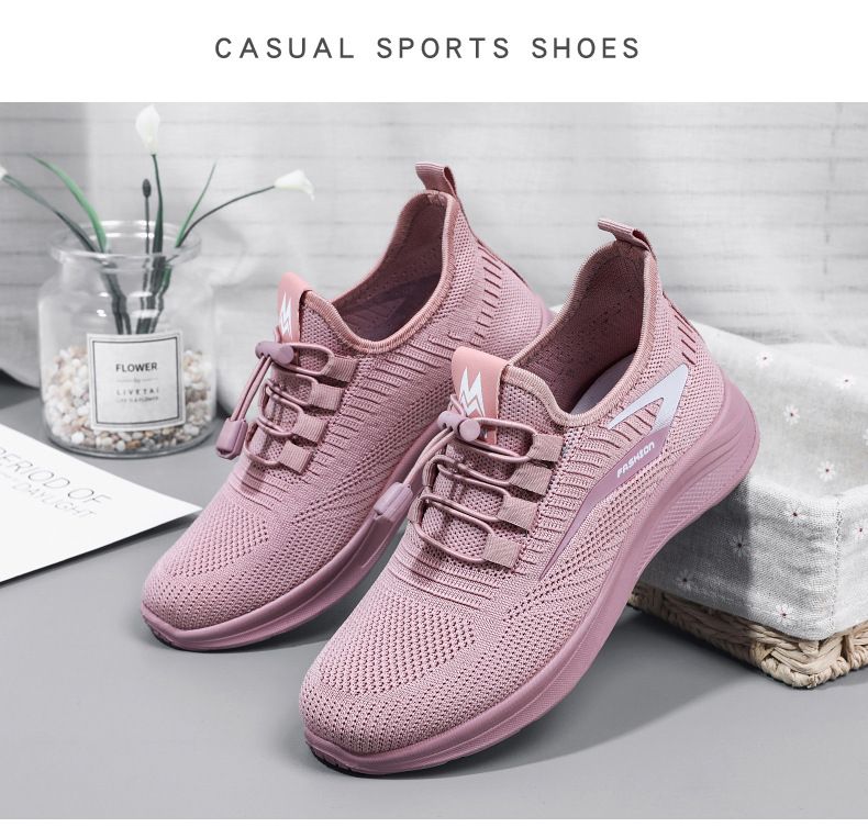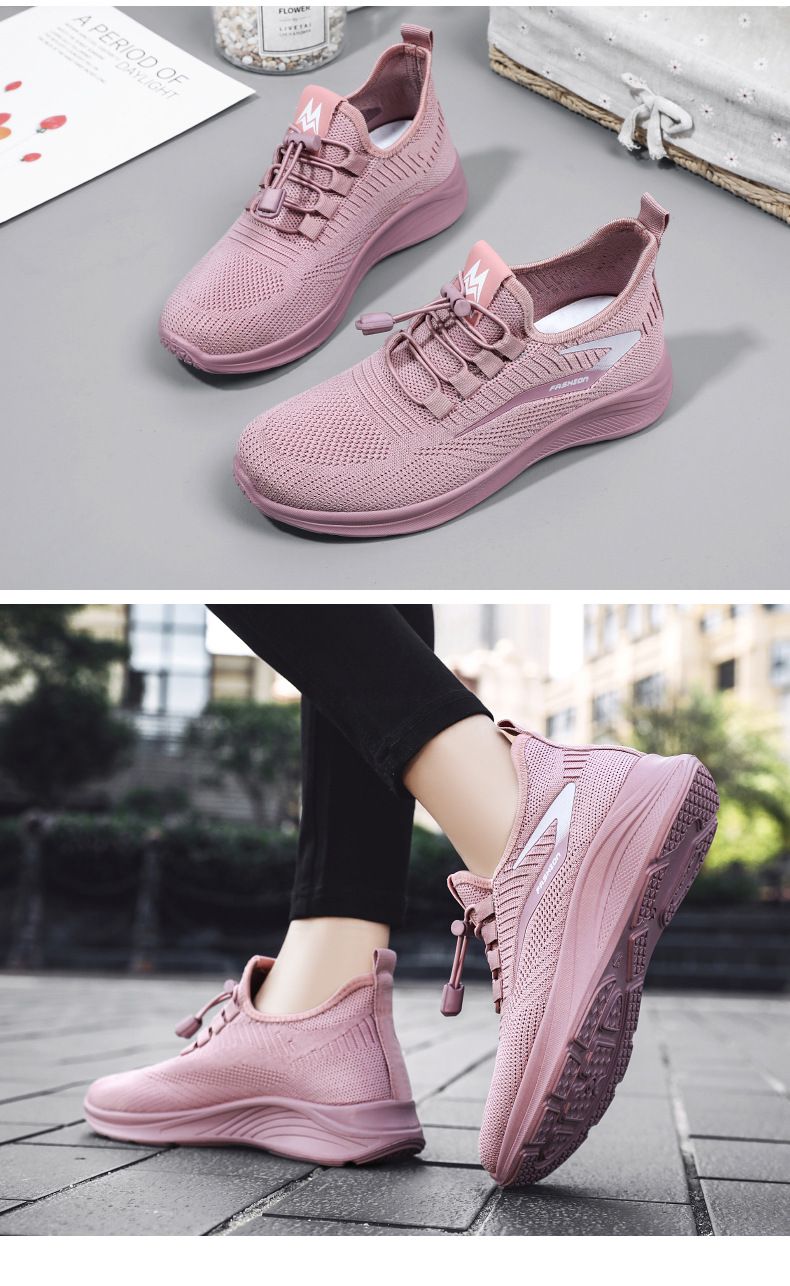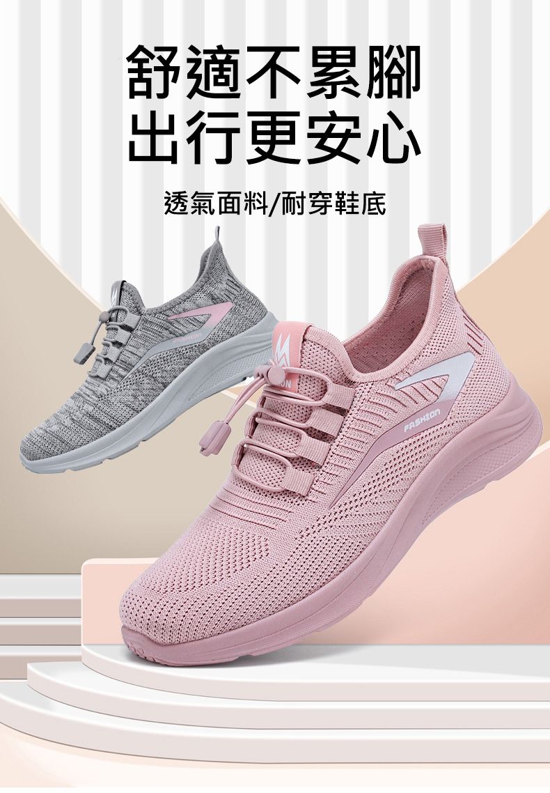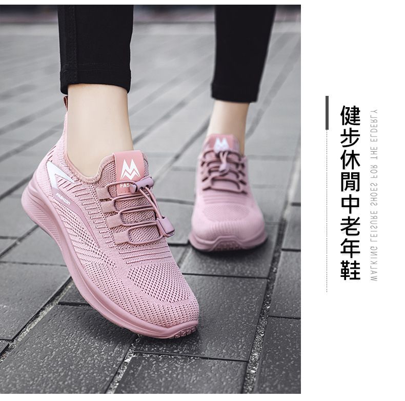 透氣休閒中老年媽媽鞋【買一送一】【粉色】兩雙