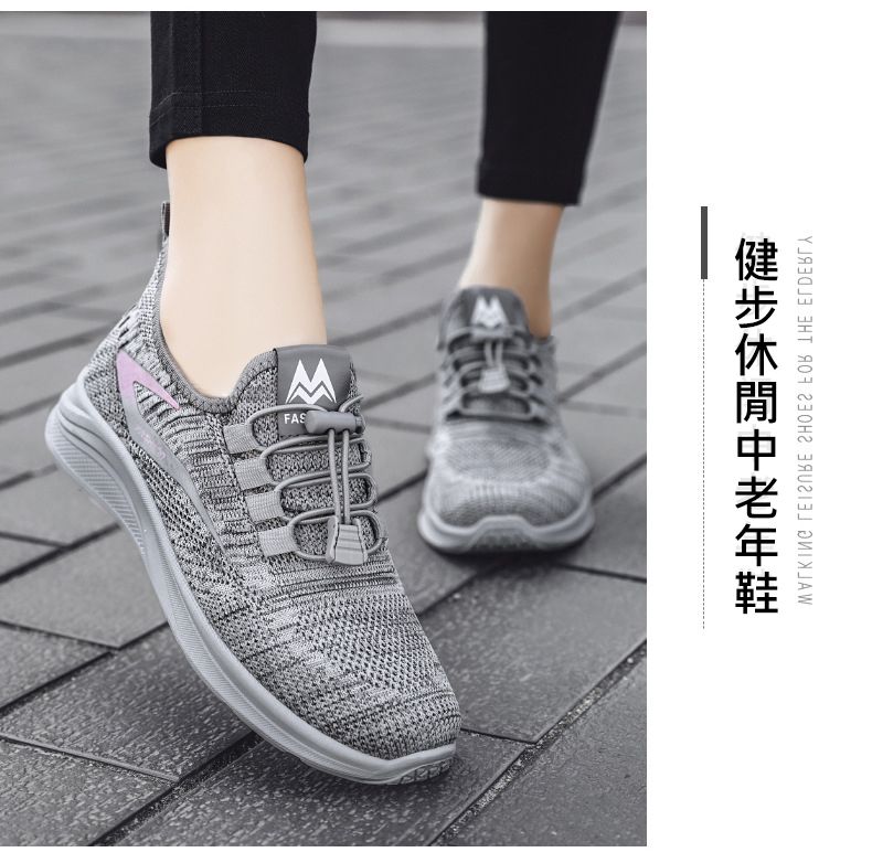 透氣休閒中老年媽媽鞋【買一送一】【灰色】+【粉色】各一雙