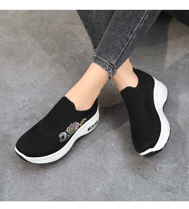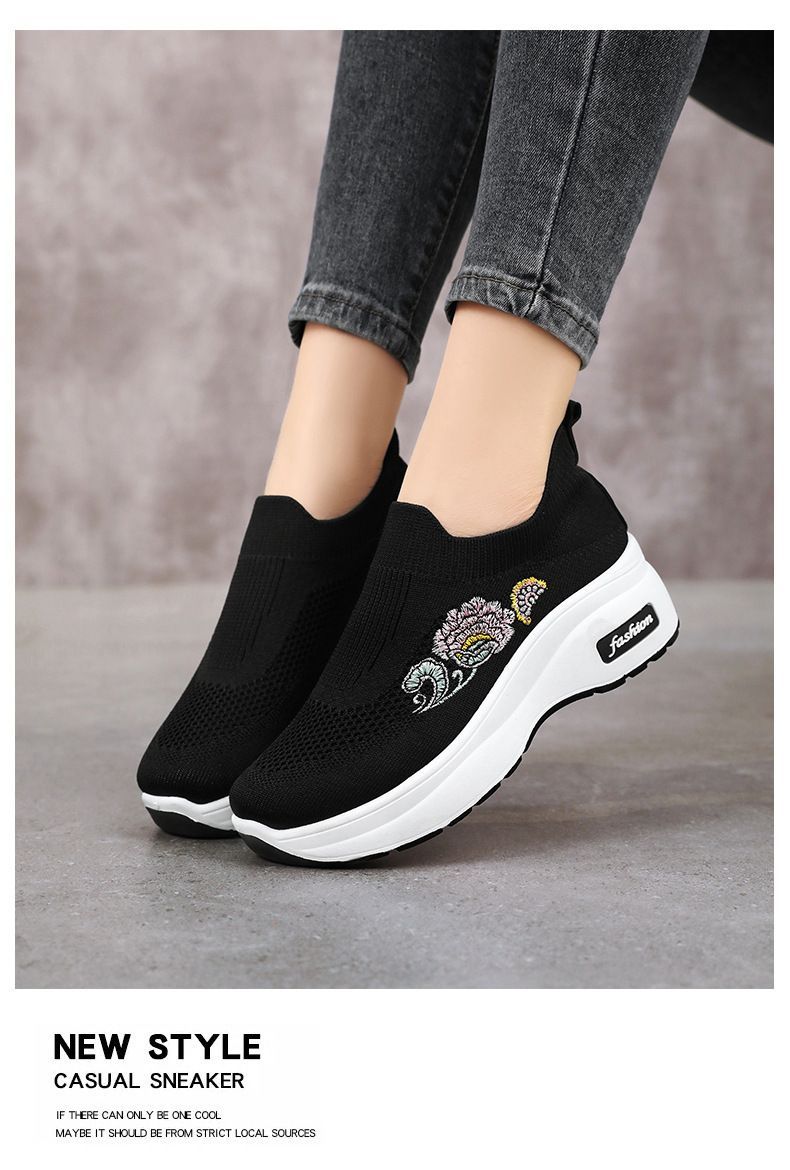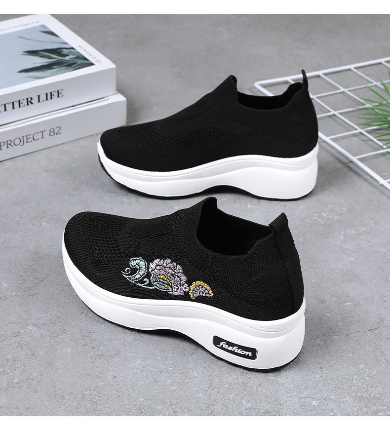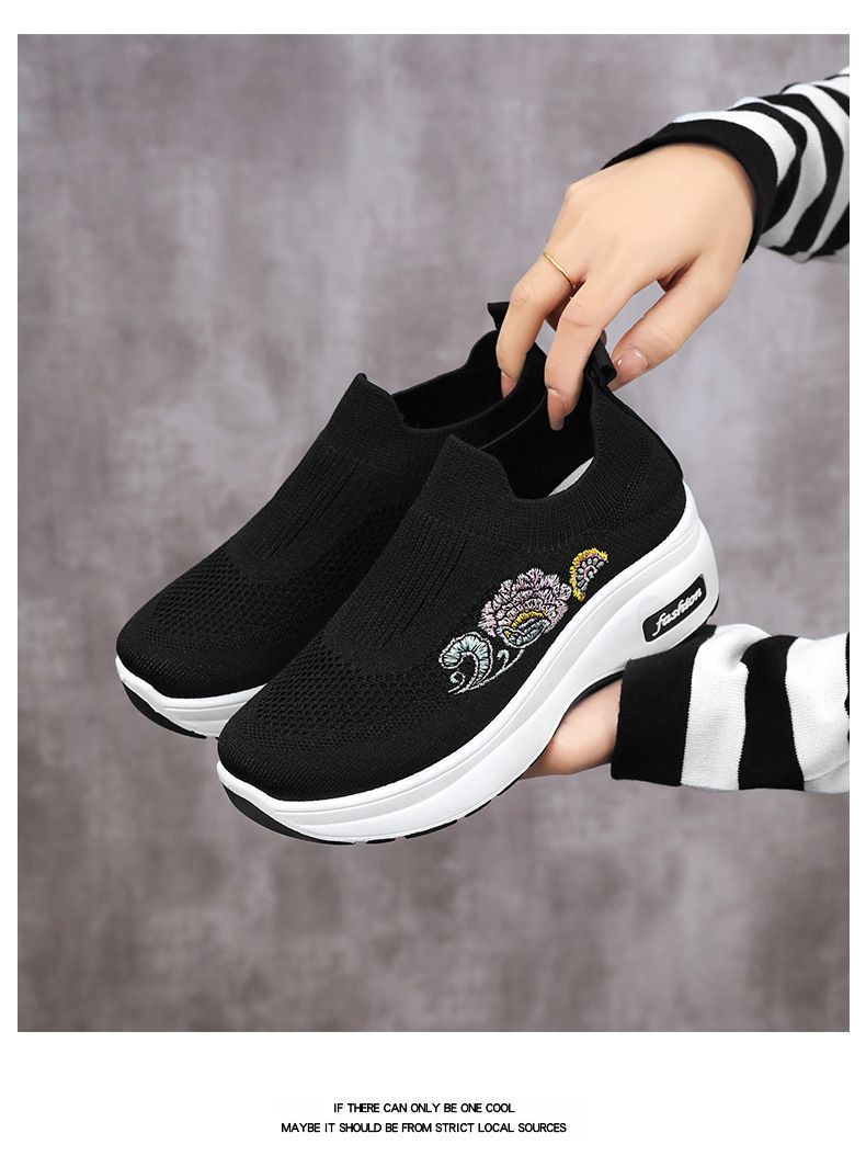 輕便透氣增高鬆糕底休閒女鞋【買一送一】【粉色】+【黑色】各一雙(到手兩雙,每雙均價549元!)