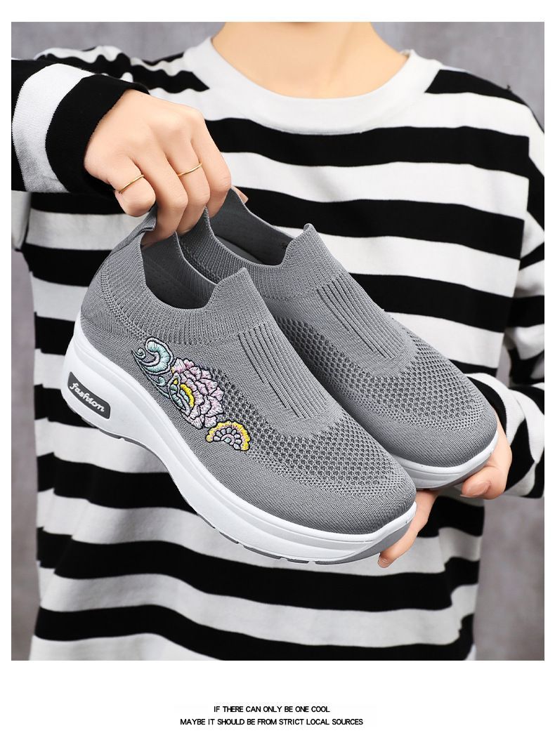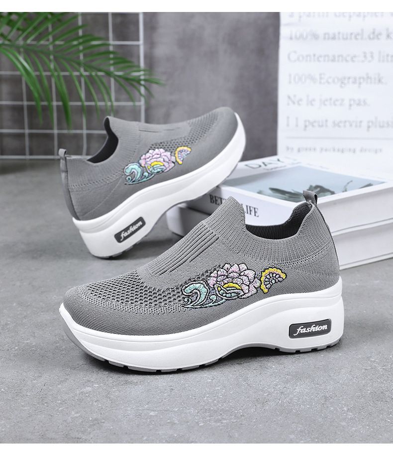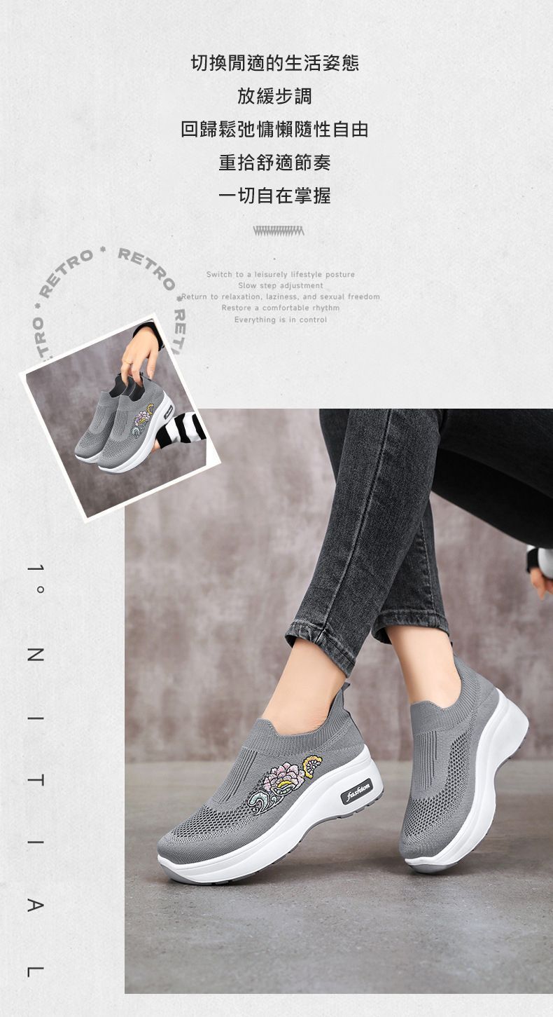 輕便透氣增高鬆糕底休閒女鞋【買一送一】【灰色】+【黑色】各一雙(到手兩雙,每雙均價549元!)