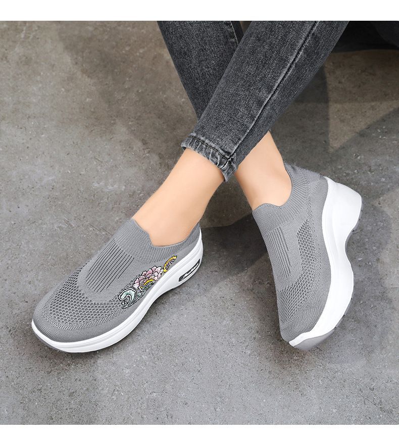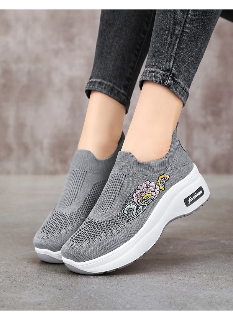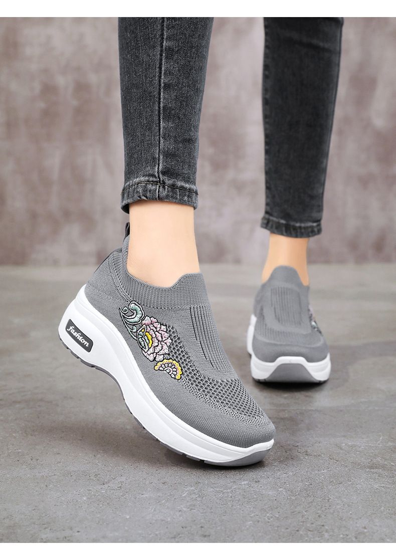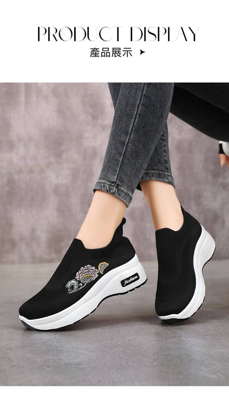 輕便透氣增高鬆糕底休閒女鞋【買一送一】【灰色】+【黑色】各一雙(到手兩雙,每雙均價549元!)