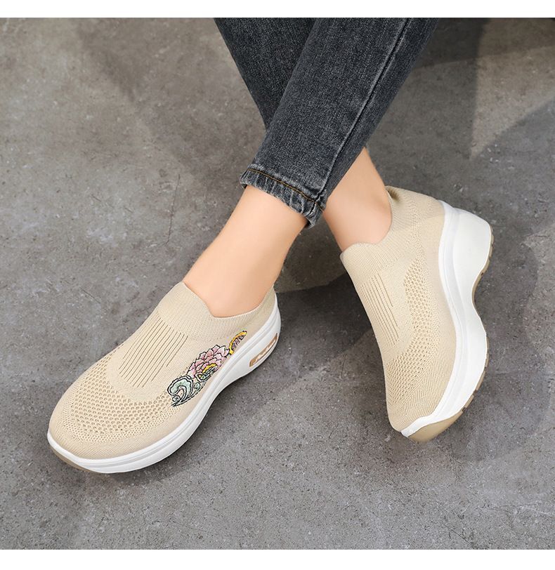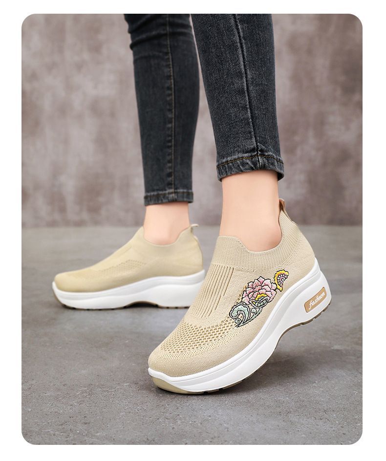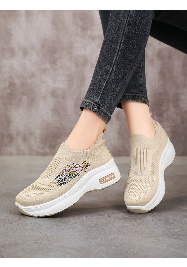 輕便透氣增高鬆糕底休閒女鞋【買一送一】【米色】+【粉色】各一雙(到手兩雙,每雙均價549元!)