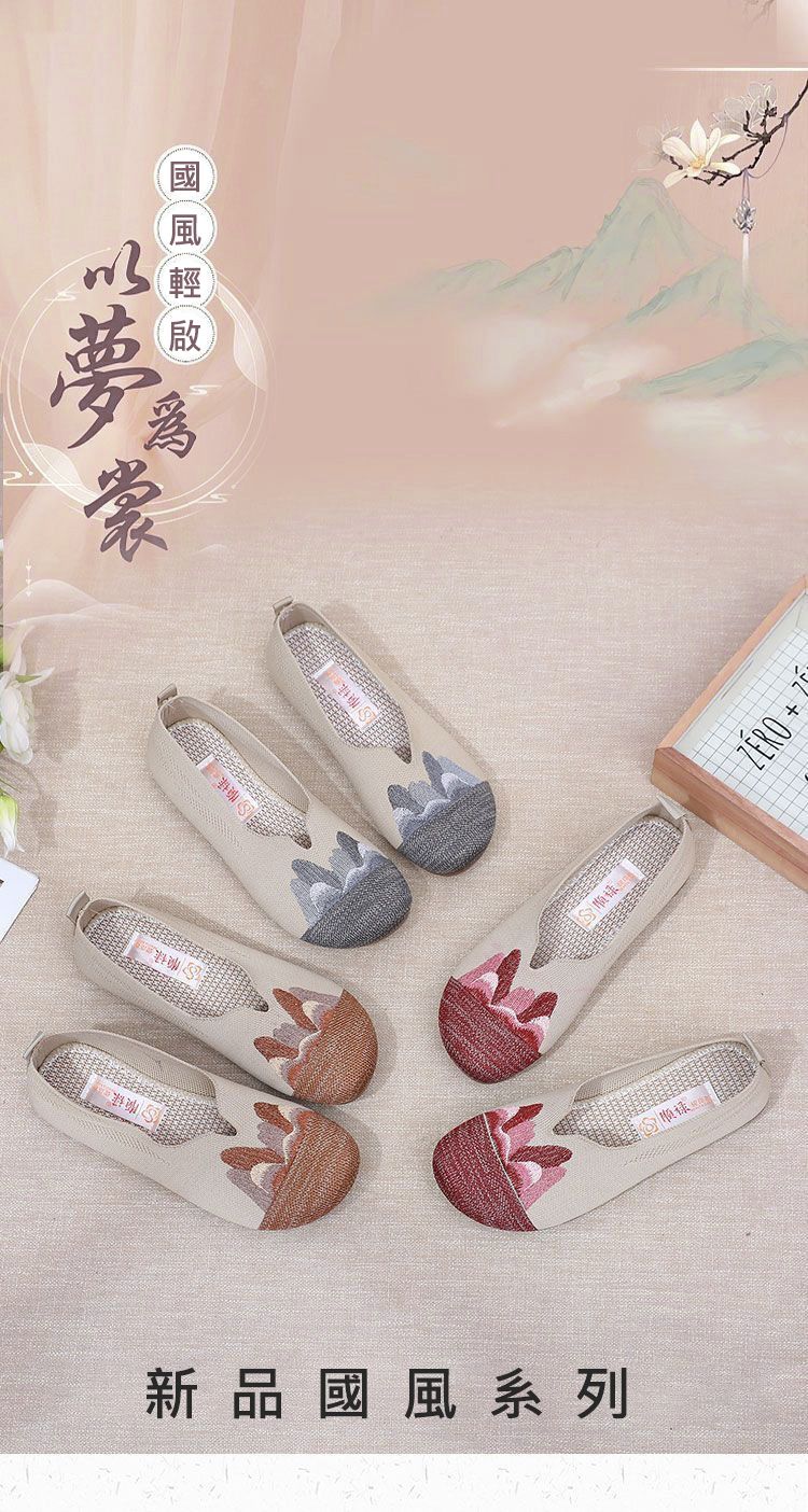 【細膩山水繡花】中老年媽媽鞋【咖色】+【灰色】各一雙(優惠400)