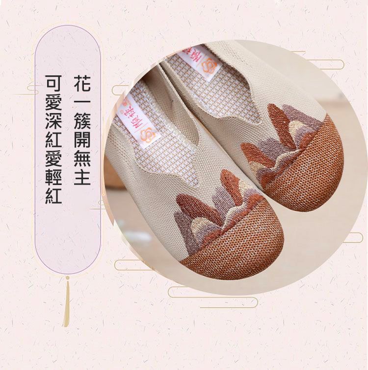 【細膩山水繡花】中老年媽媽鞋【紅色】+【咖色】各一雙(優惠400)
