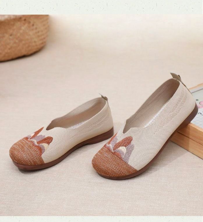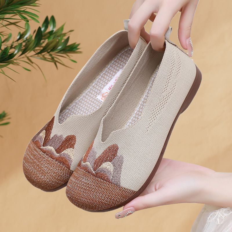 【細膩山水繡花】中老年媽媽鞋【咖色】一雙