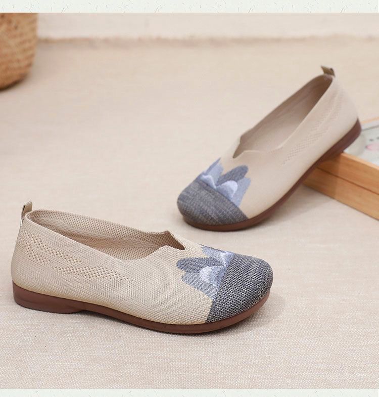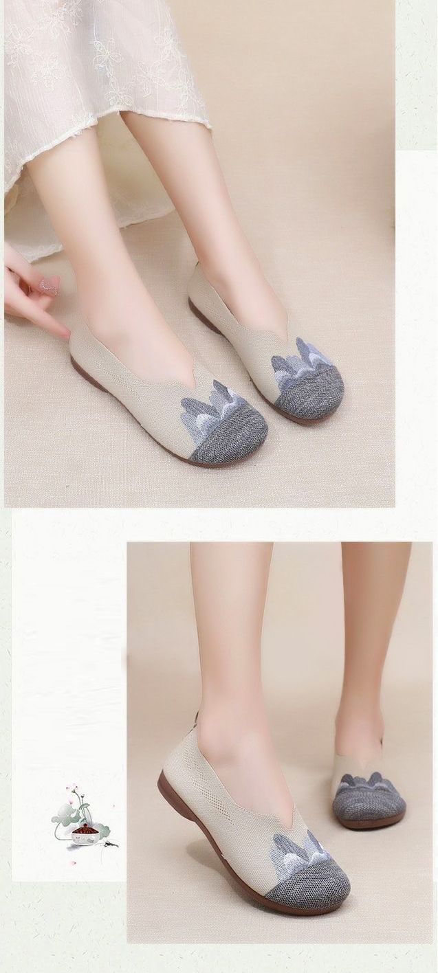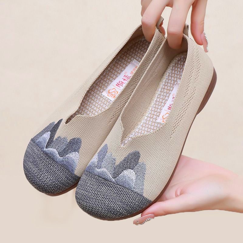 【細膩山水繡花】中老年媽媽鞋【灰色】一雙