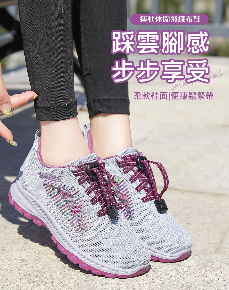 【踩雲腳感!】女士飛織運動鞋【灰色】+【紫色】各一雙(優惠400)