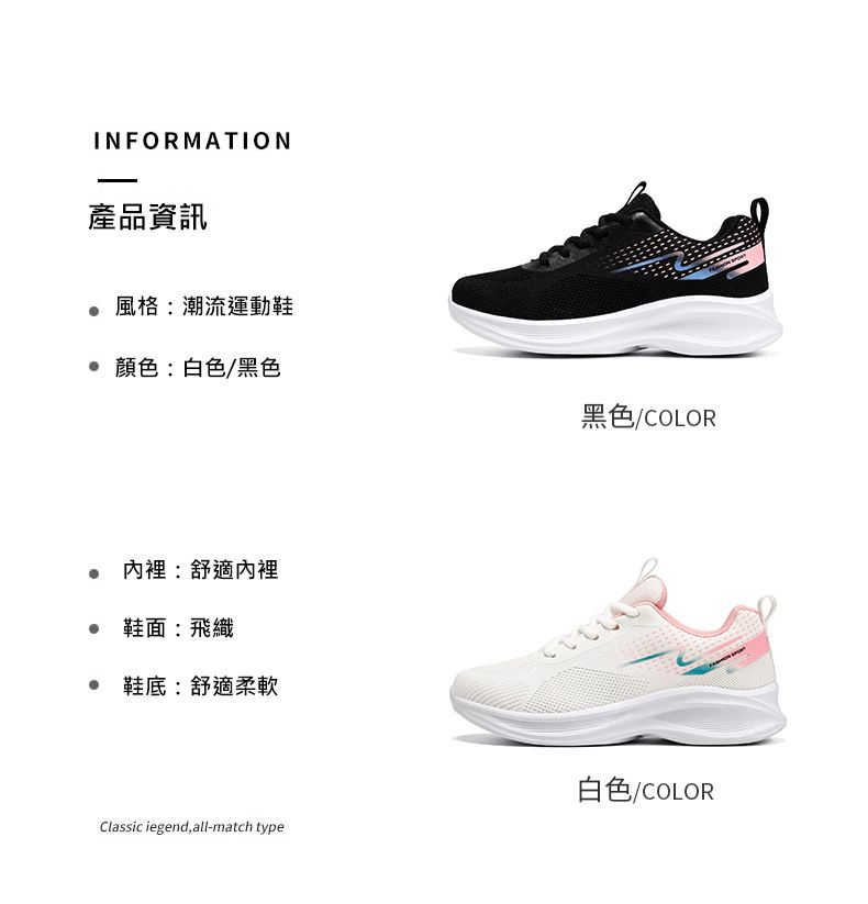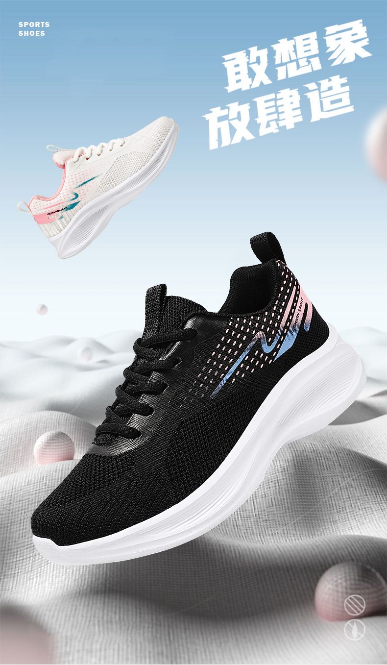 新款女式軟底清爽透氣跑鞋【白色】+【黑色】各一雙(優惠400)