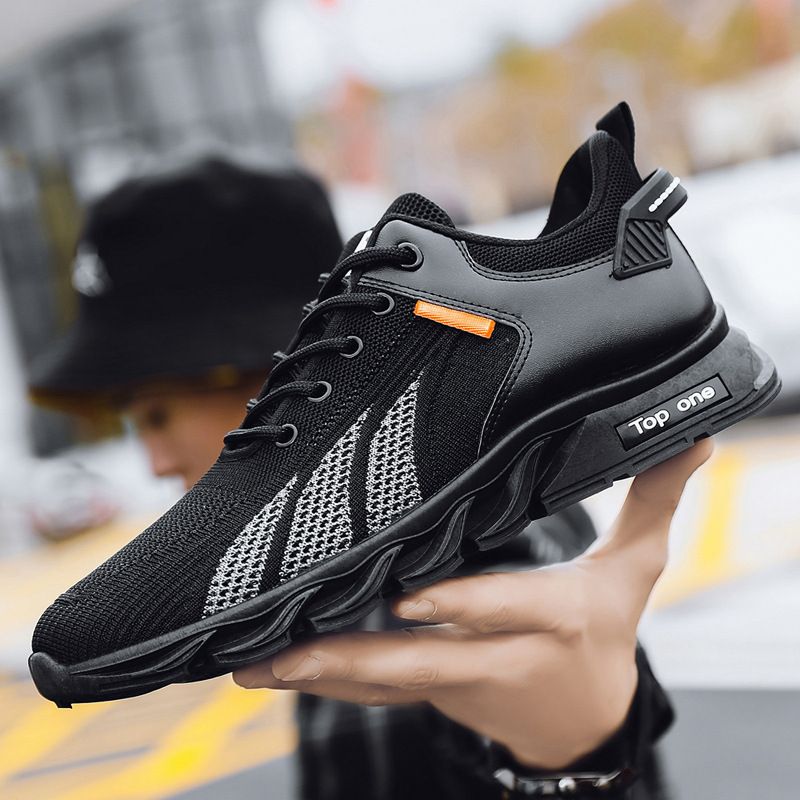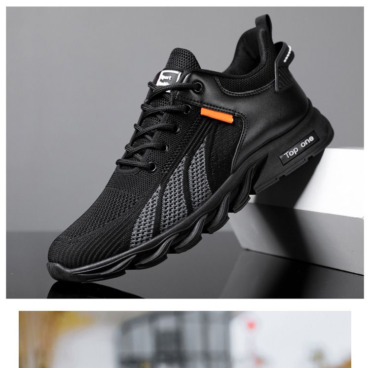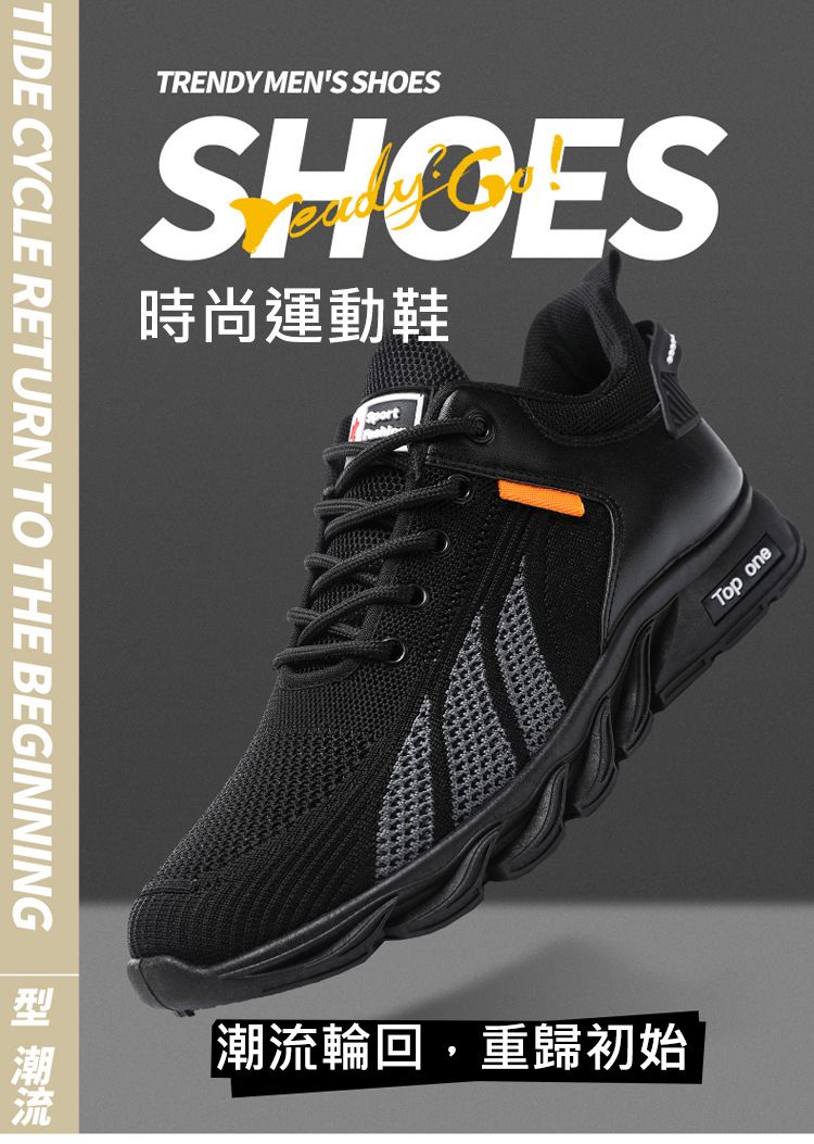 【高顏實力派】柔韌有型新款男士飛織運動軟底鞋【黑色】一雙
