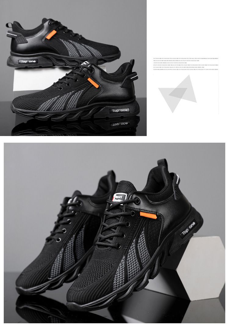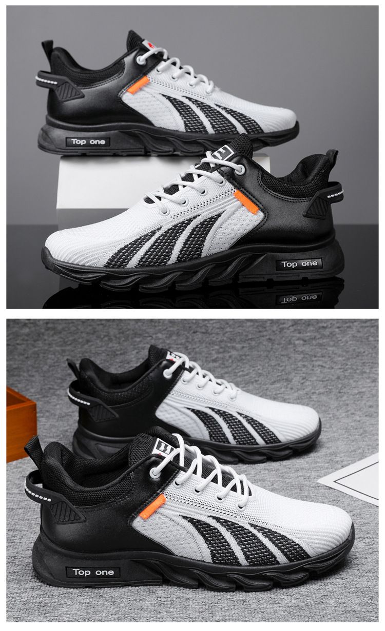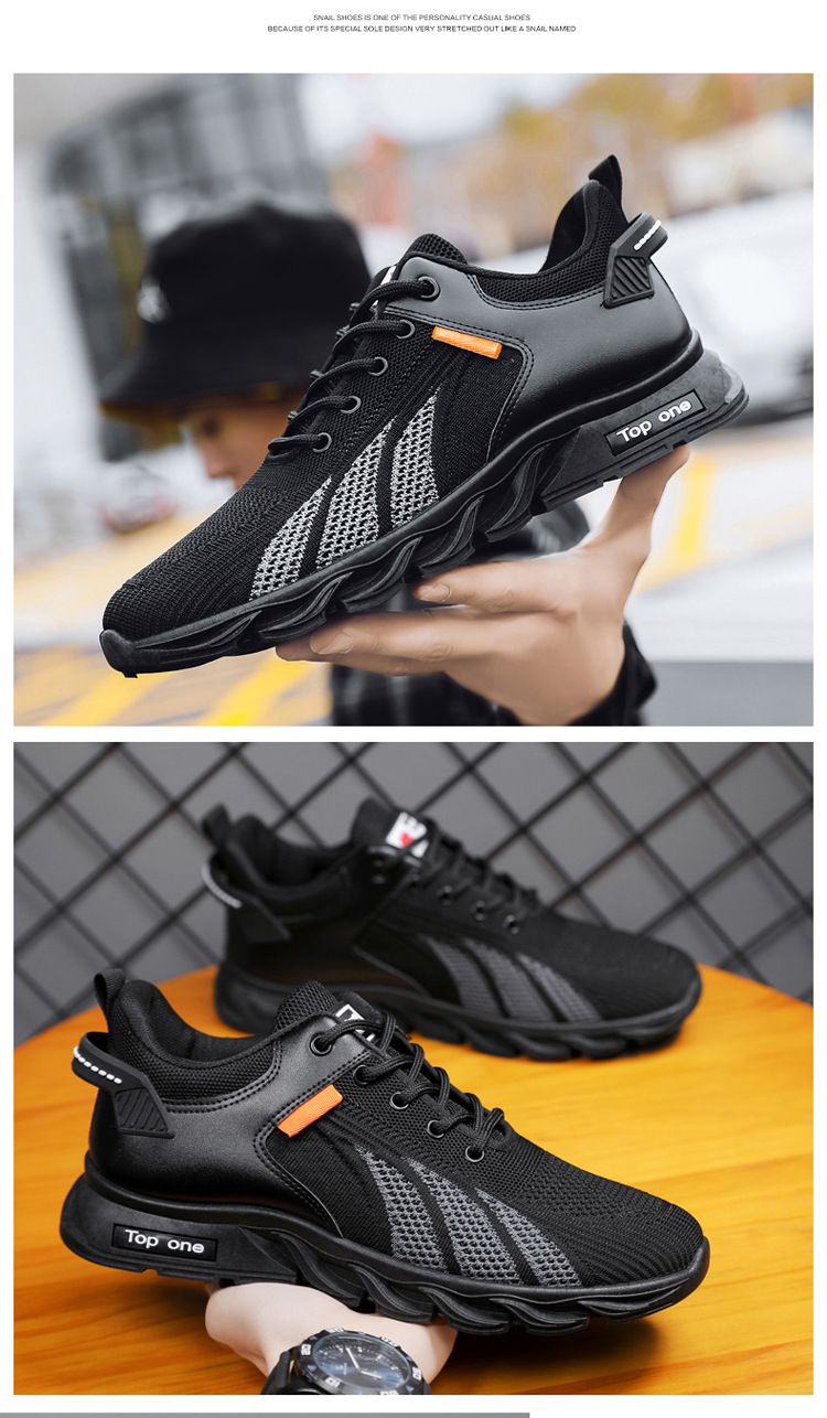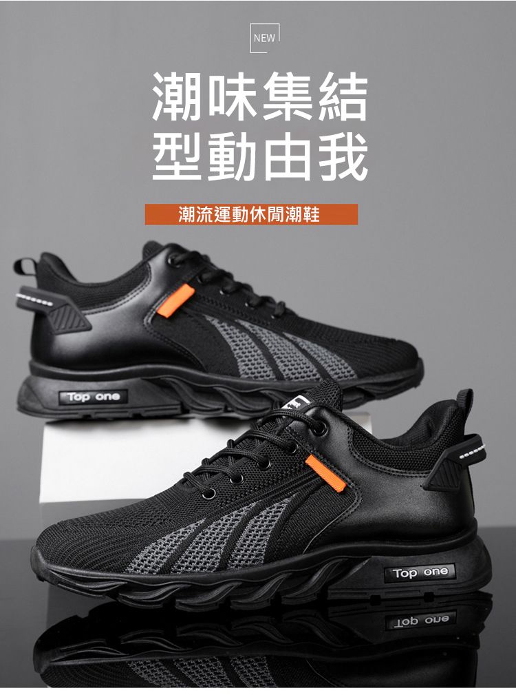 【高顏實力派】柔韌有型新款男士飛織運動軟底鞋【黑色】+【黑白色】各一雙(優惠400)