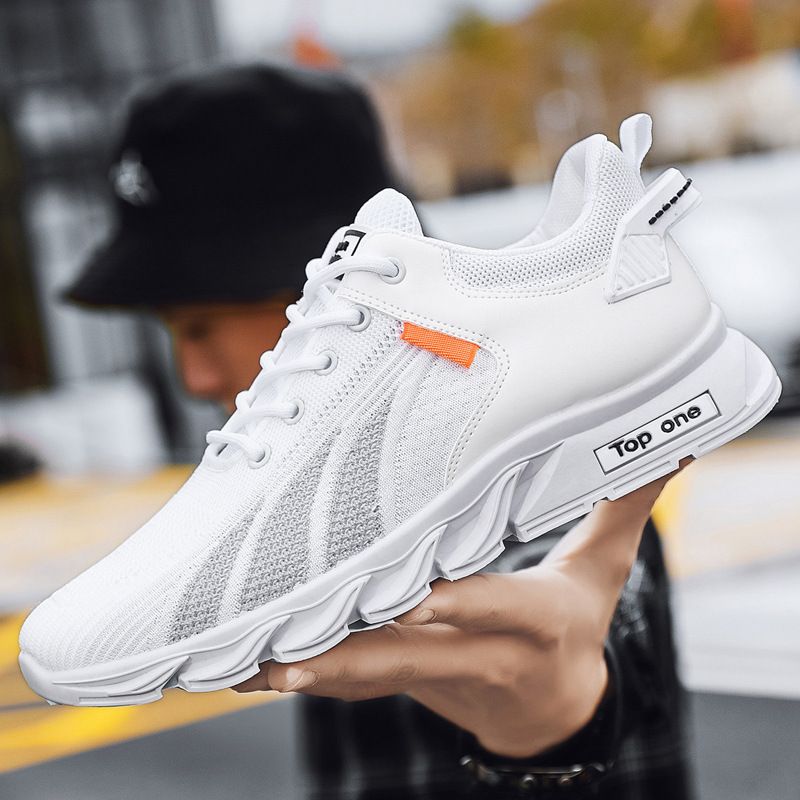 【高顏實力派】柔韌有型新款男士飛織運動軟底鞋【白色】一雙