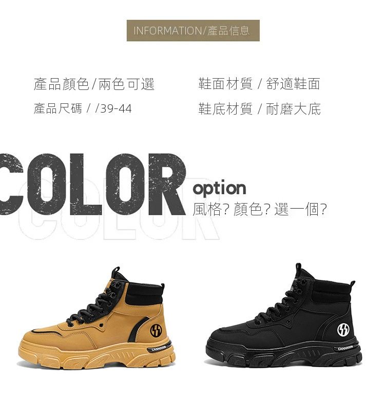 英倫風復古厚底男士短靴【黃色】+【黑色】各一雙(到手兩雙,每雙798元!)