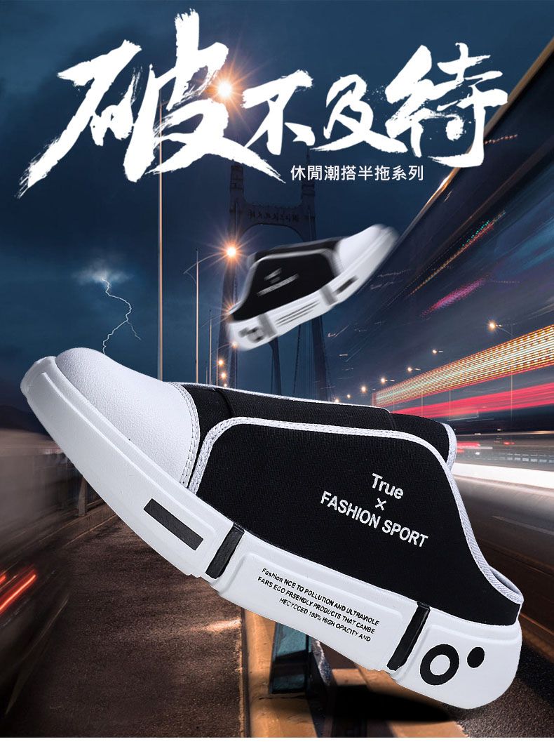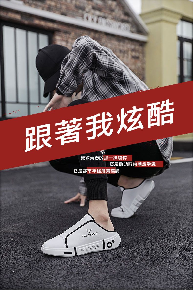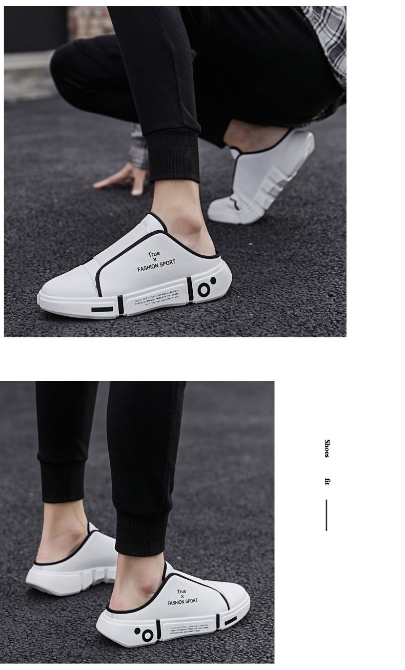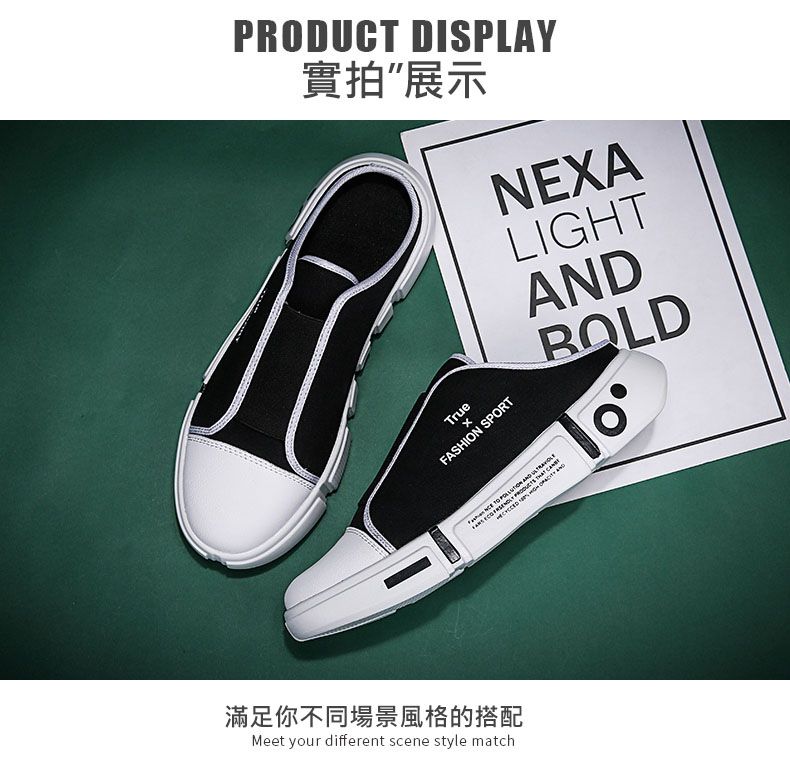 新款透氣懶人休閒一腳蹬半拖鞋【白色】+【黑色】各一雙(優惠400)