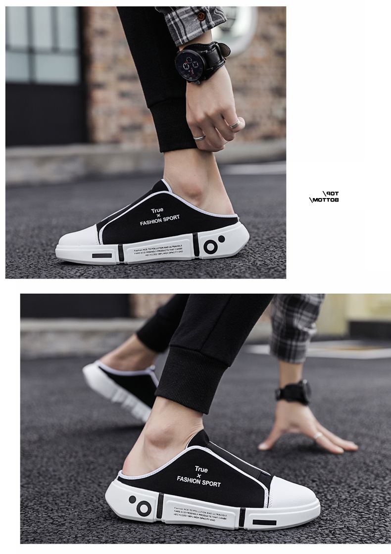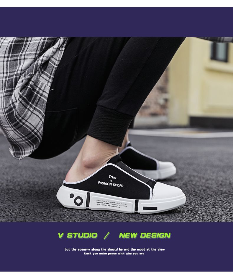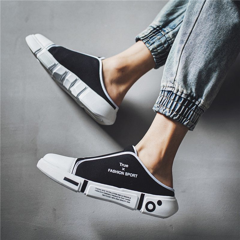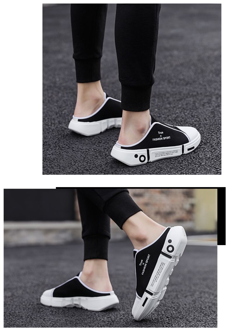 新款透氣懶人休閒一腳蹬半拖鞋【白色】+【黑色】各一雙(優惠400)