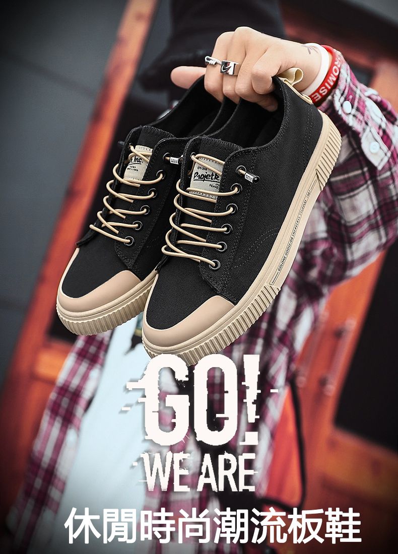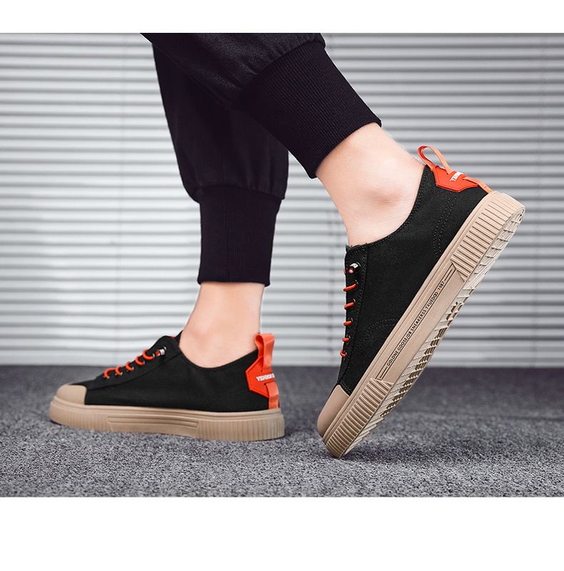【潮流帆布】男士休閒時尚板鞋【黑色】+【橘色】各一雙(優惠400)