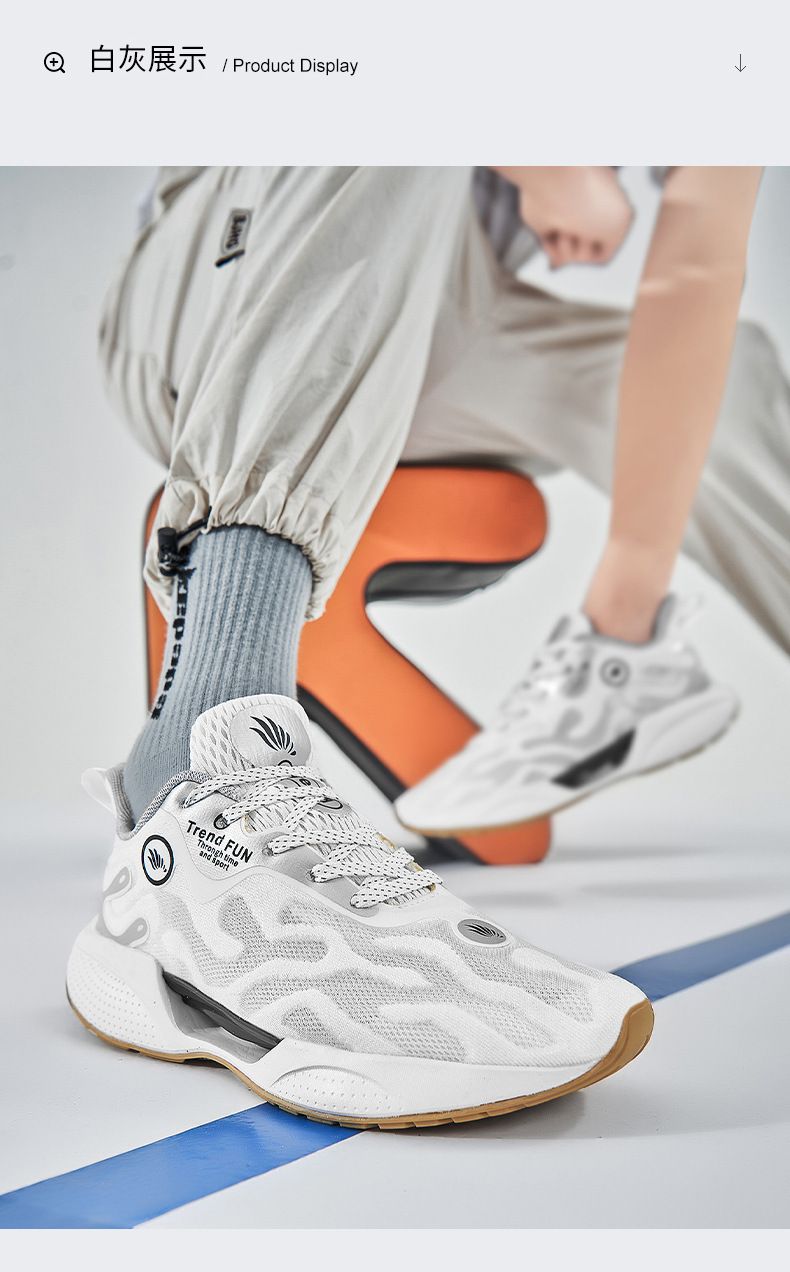 【輕便百搭】秋季透氣薄款運動男鞋【白灰色】一雙