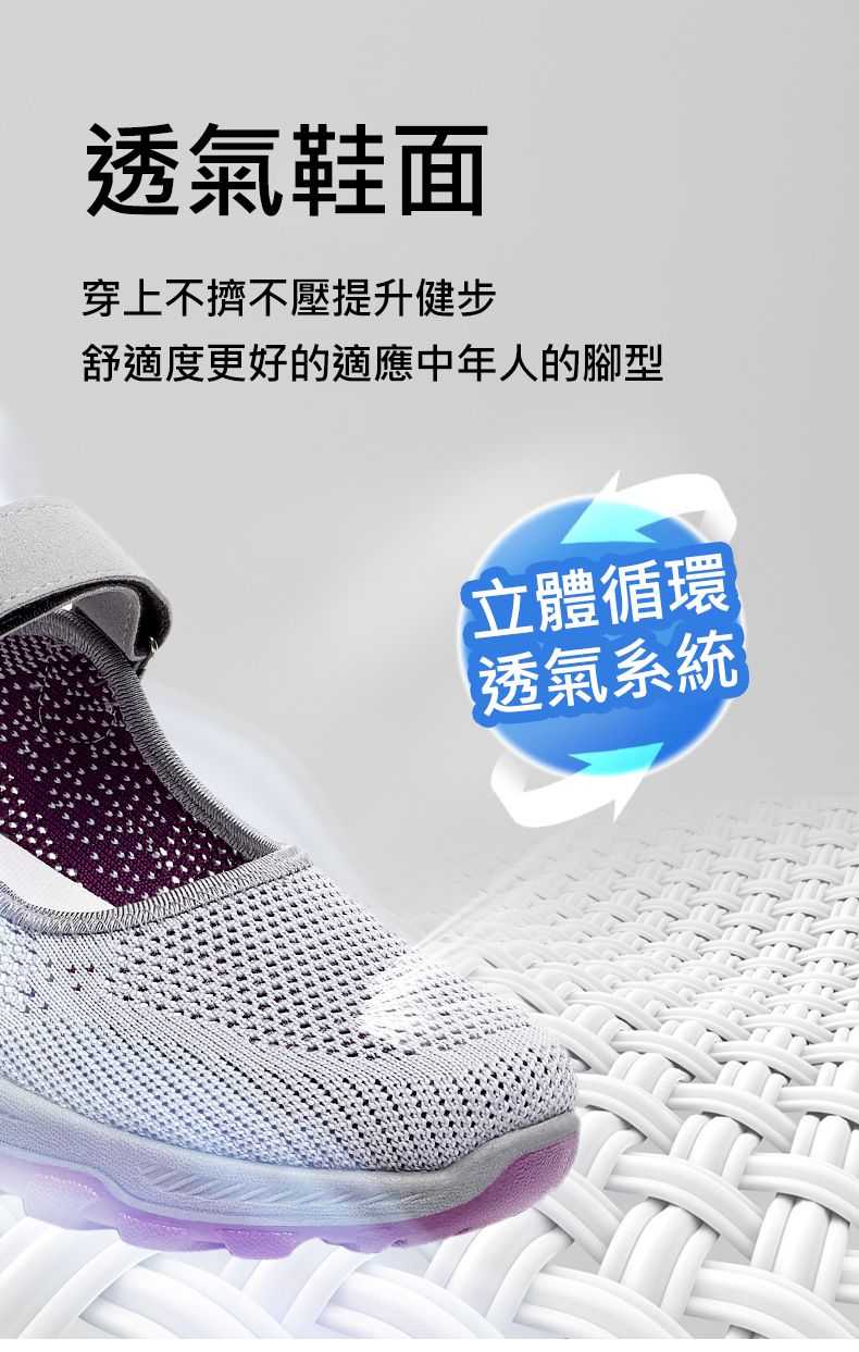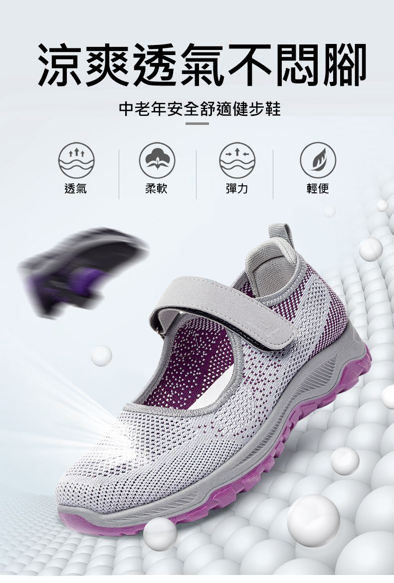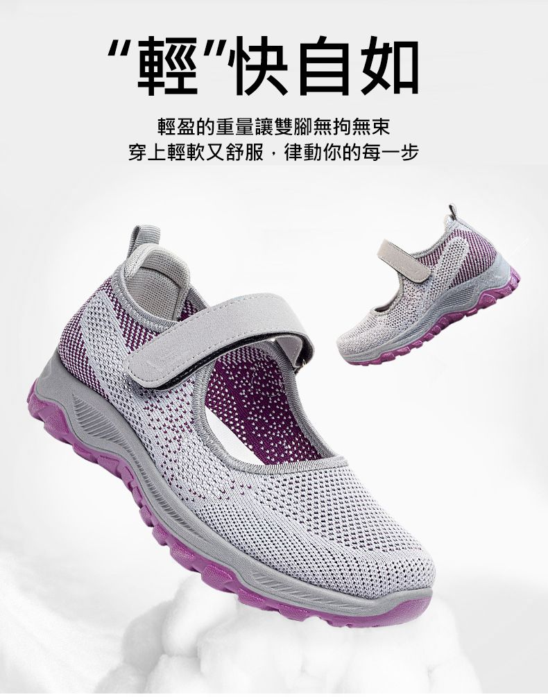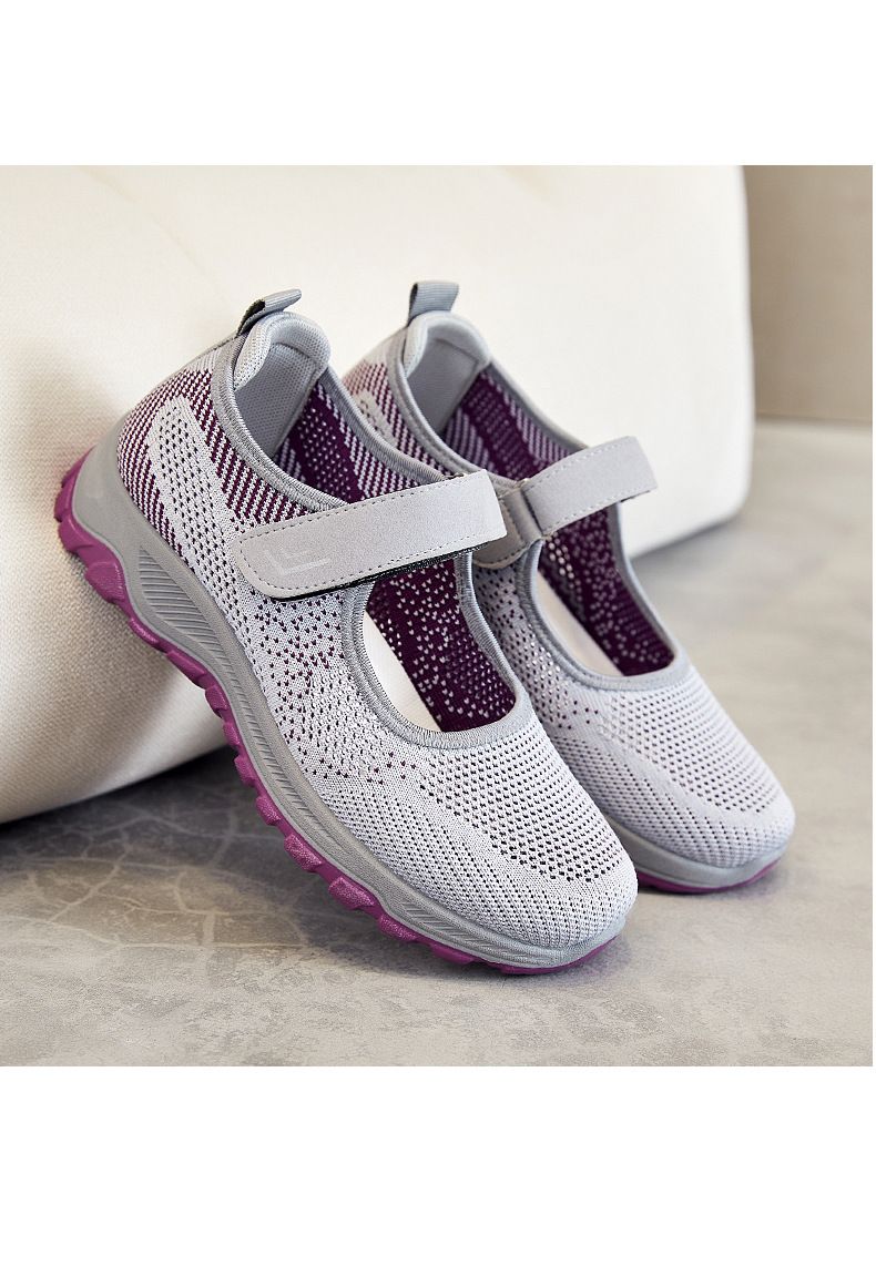 女士舒適涼爽透氣健步鞋【買一送一】【黑紫色】+【淺灰色】各一雙
